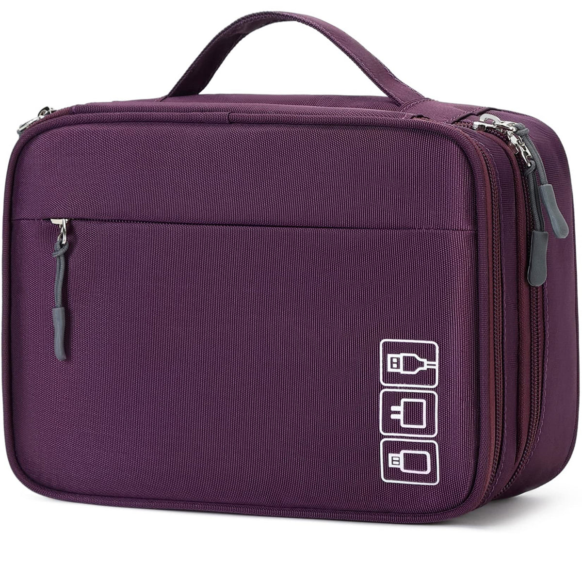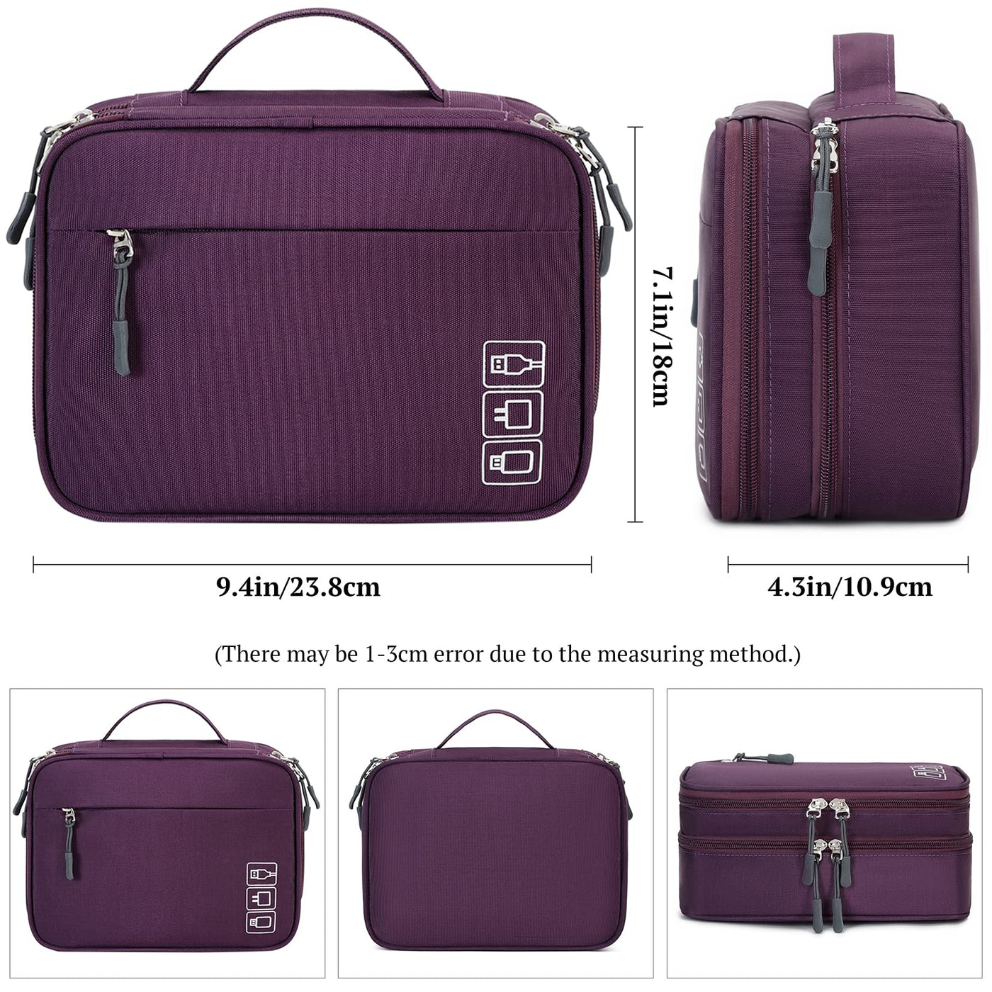 Product Description Material: Water Proof Polyester Fabric, Durabel But Not Heavy Dimension: 9.4*7.1*4.3 Inches Weight:0.6Lb Color: Purple, Grey,Dark Blue, Black Structure Two Compartment 3 Mesh Pocket For Cellphones, Power Bank, Usb Flash Disk And Hard Disk 12 Elastic Loops For Cord Cable 3 Pieces Adjustable Hook And Loop Enables Articles Features Light Weight, Durable Quality Small And Convenient Lots Of Storage Spaces Can Fit All Of Your Electronics Accessories And Various Cables And Keep Them Separated And Easy To Be Found Though Handle Strap Design Is Labour-Saving, Firm, Durable And Easy To Carry Kindly Notes Due To The Light And Screen Setting Difference, The Items Real Color May Be Slight Difference. Please Allow Slight Dimension Difference Due To Different Manual Measurement. Package Includes: 1* Cords Cable Organizer Bag 1* Polybag