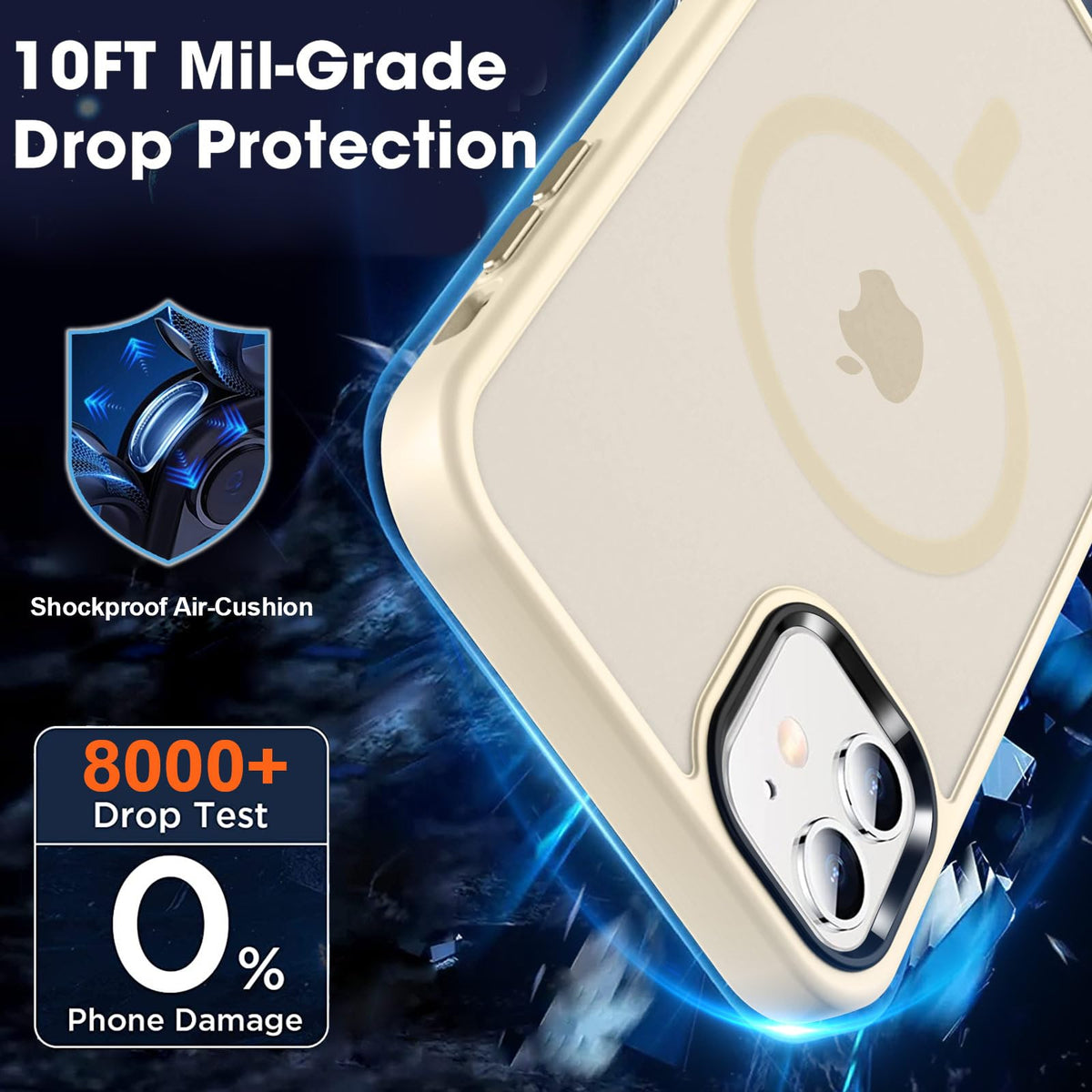 Q: What kind of protection does this case offer for my iPhone 12/12 Pro?A: This case provides Mil-Grade Drop Protection, certified by SGS and ROHS. It uses a multi-layer buffer structure to absorb impacts effectively, ensuring your iPhone 12/12 Pro remains safe from accidental drops and bumps.