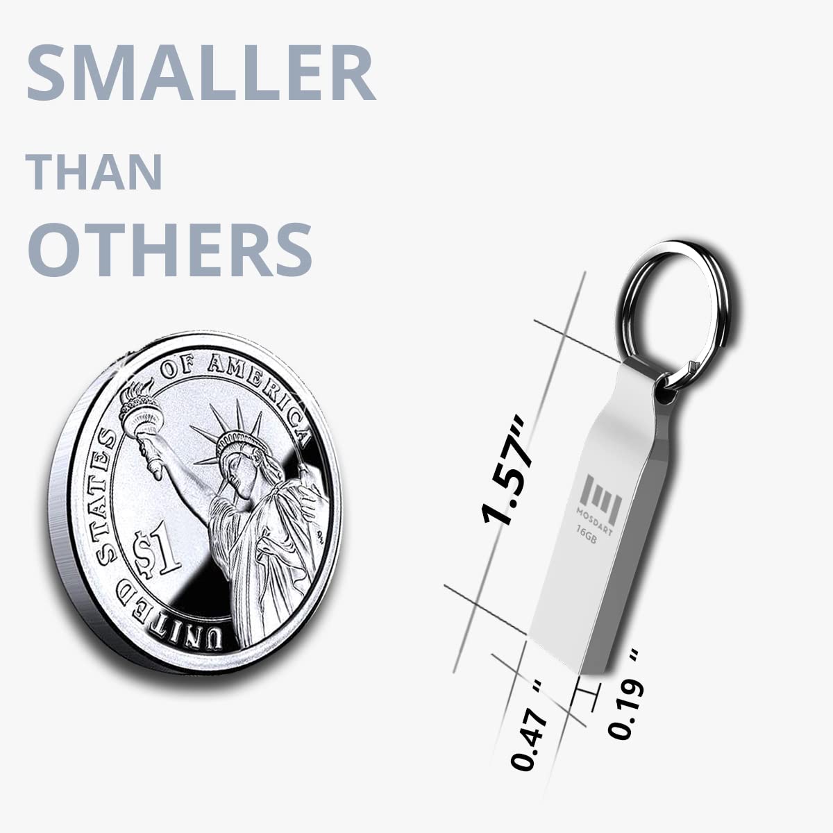 Mosdart 16Gb Full Metal Usb 2.0 Flash Drive Exfat Thumb Drive With Keychain 16 Gb Wateproof Jump Drive 16G Memory Stick For Data Storage And Backup, Silver