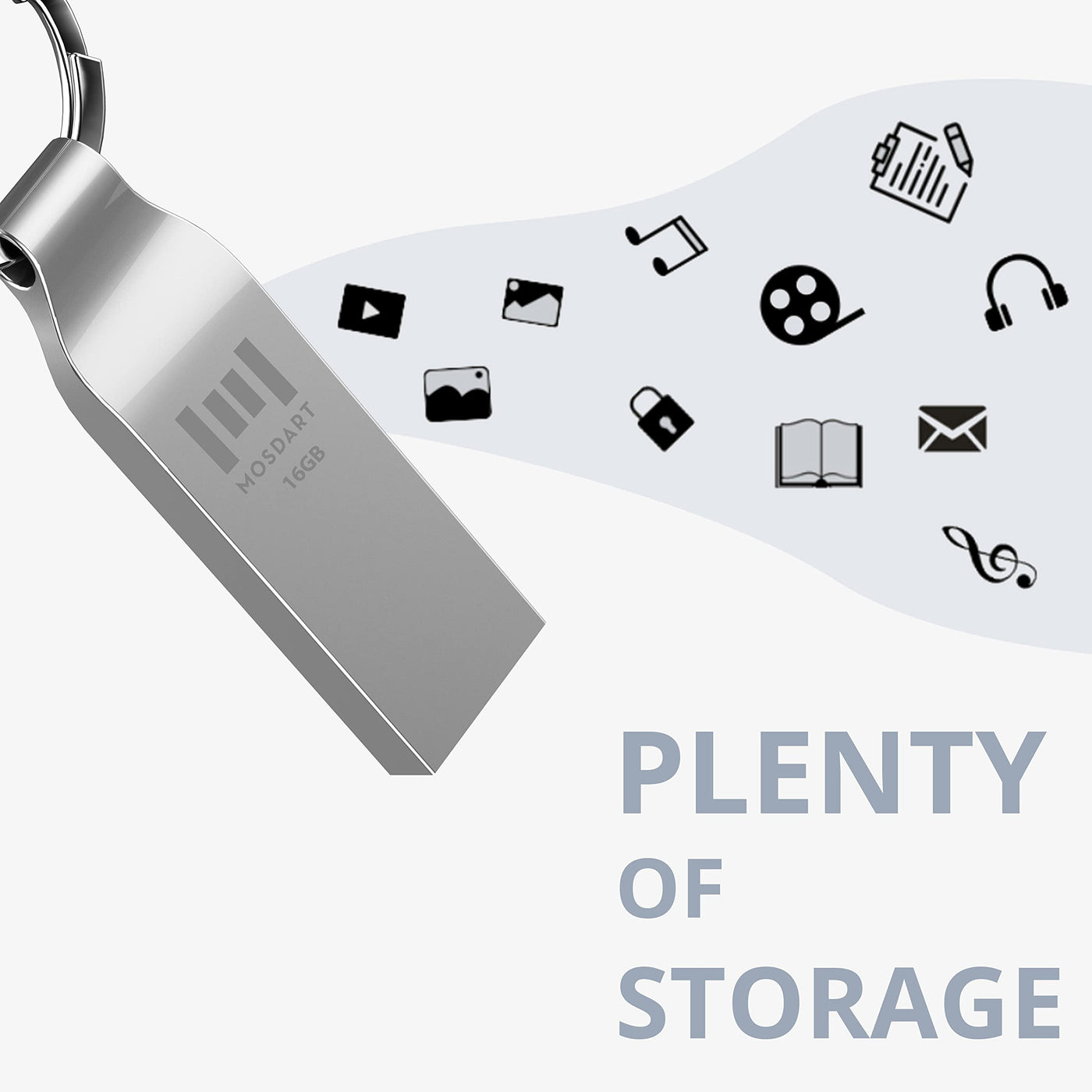 Mosdart Waterproof 16Gb Usb2.0 Flash Drive, Fat32 Metal Memory Stick With Keychain, For System Back, Data Storage, Silver