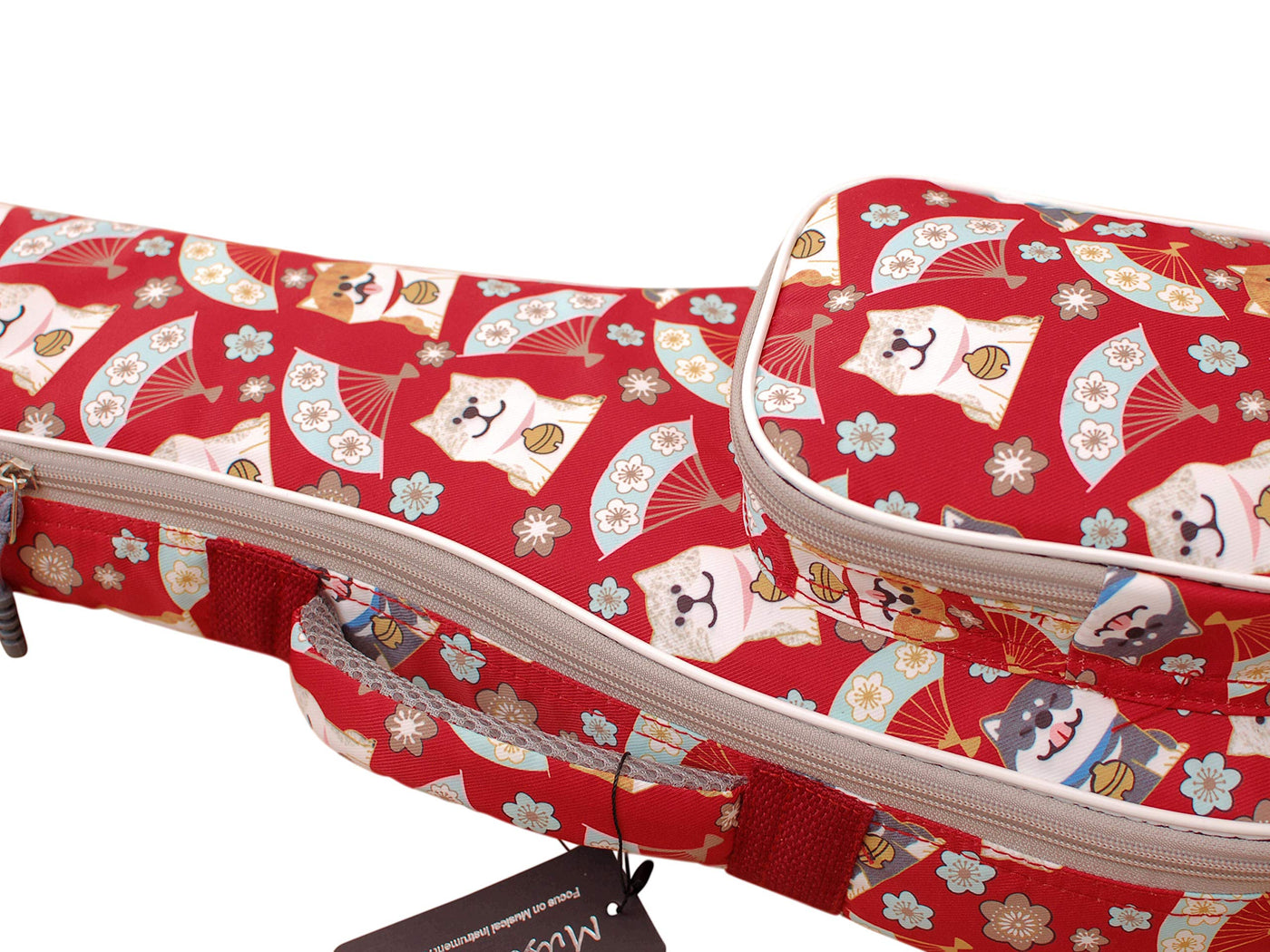 Music First Cute Cartoon Shiba Inu And Sakura Dog Ukulele Case, Fit For 2324 Inch Concert Ukulele, Red