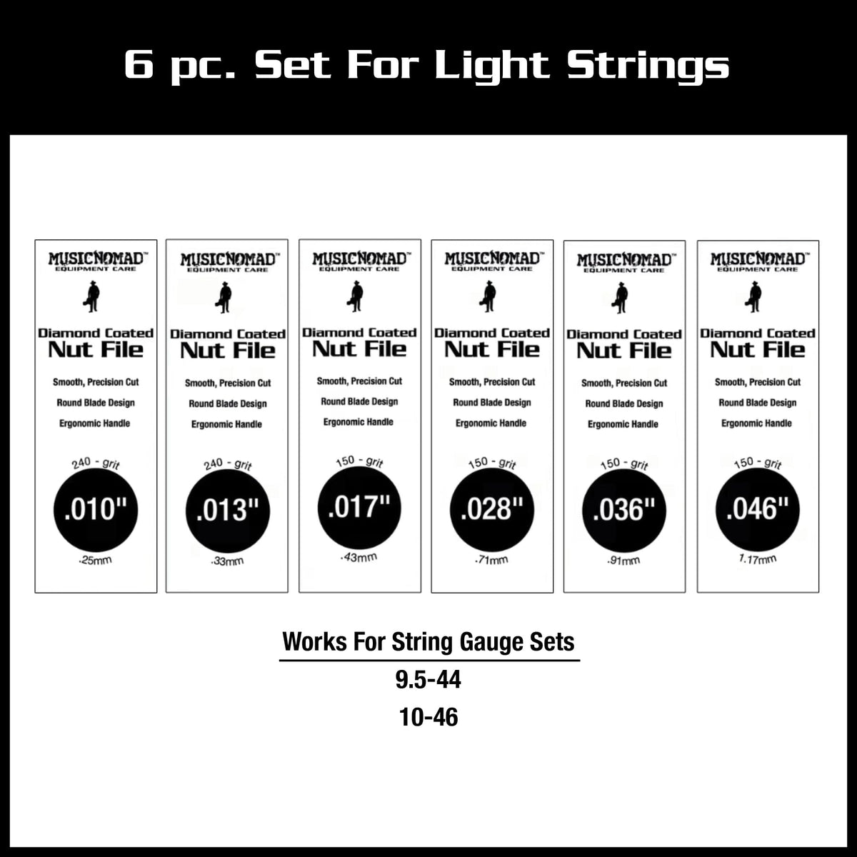Musicnomad Mn673 5 Pc. Diamond Coated Bass Nut Slotting File Set, With Storage Case