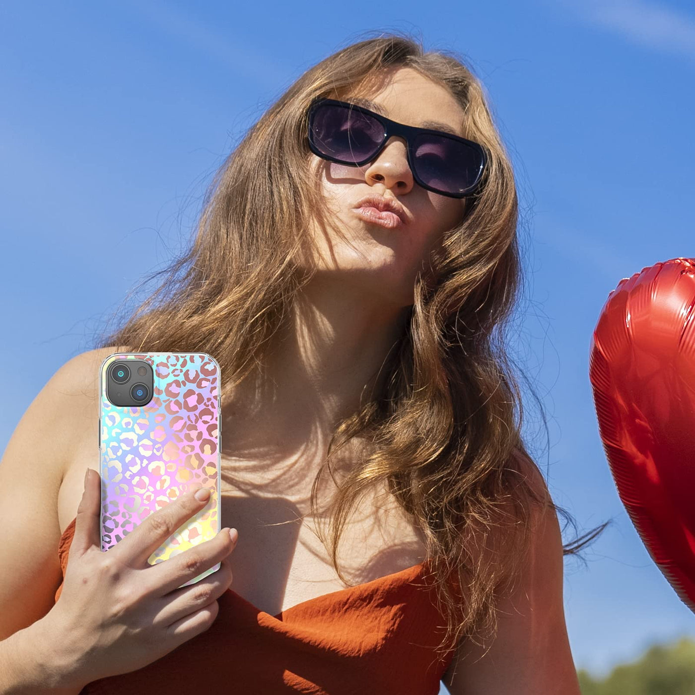 Mybat Pro Magnetic Slim Case For Iphone 14 Plus Case 6.7, Compatible With Magsafe, Mood Series For Women Girls, Military Grade Drop Shockproof Non-Yellowing Protective Cover, Holographic Leopard