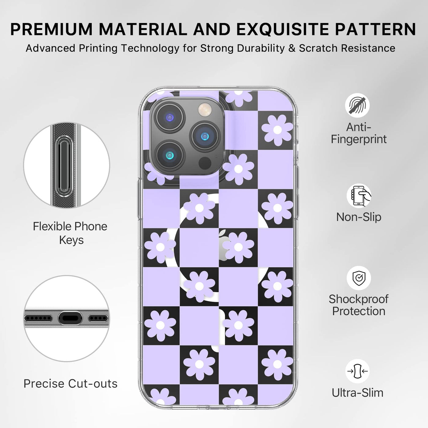 Mybat Pro Magnetic Slim Clear Case For Iphone 14 Pro Max Case 6.7, Compatible With Magsafe, Cute Crystal Mood Series For Women Girls, Military Grade Drop Shockproof Non-Yellowing, Retro Purple Floral