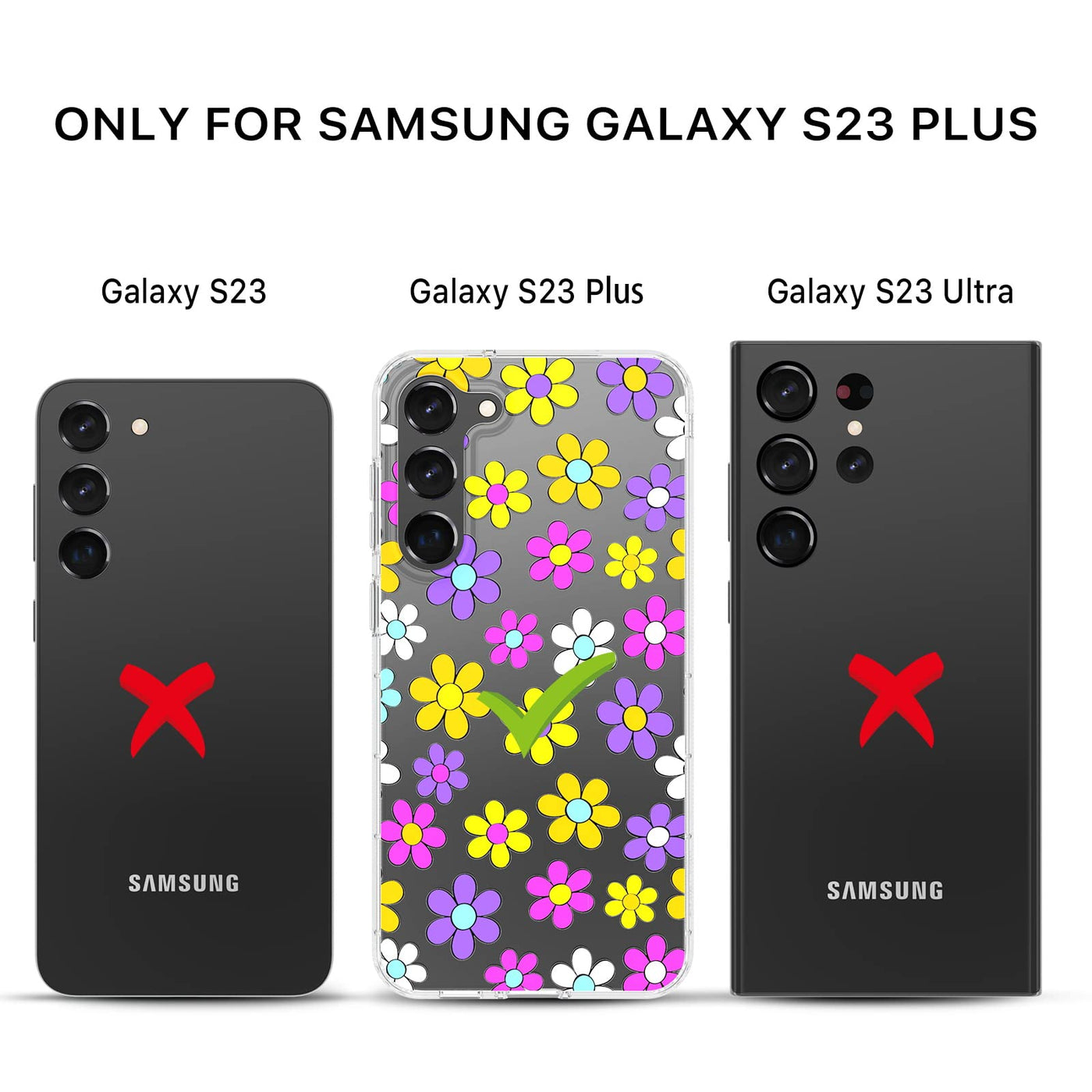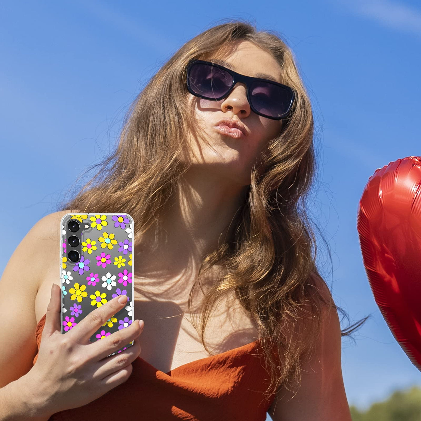 Mybat Pro Slim Cute Clear Case For Samsung Galaxy S23 Plus Case 6.6 Inch, Mood Series Crystal Stylish Military Grade Drop Shockproof Non-Yellowing Protective Cover For Women Girls, Multi Color Daisy