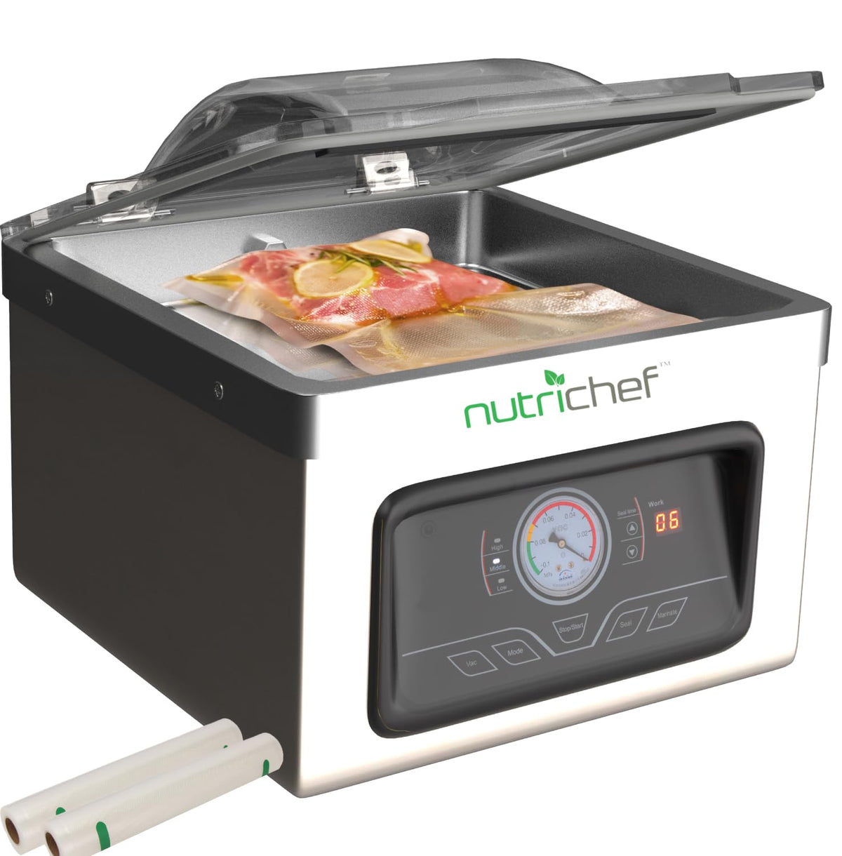 Nutrichef 350W Chamber Vacuum Sealing Machine - Automatic 8L Sealer System With Digital Controls, Airtight Bags For Food Preserv