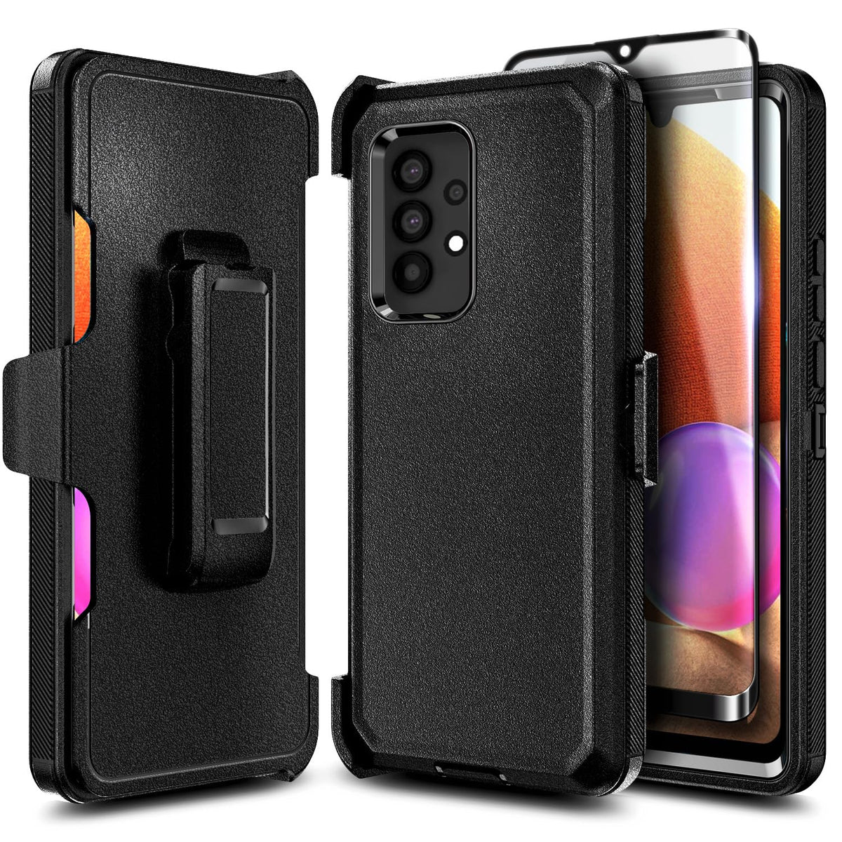 Nznd Designed For Galaxy A32 5G Case, Samsung A32 5G Phone Case With Tempered Glass Screen Protector, Belt Clip Holster Built-In