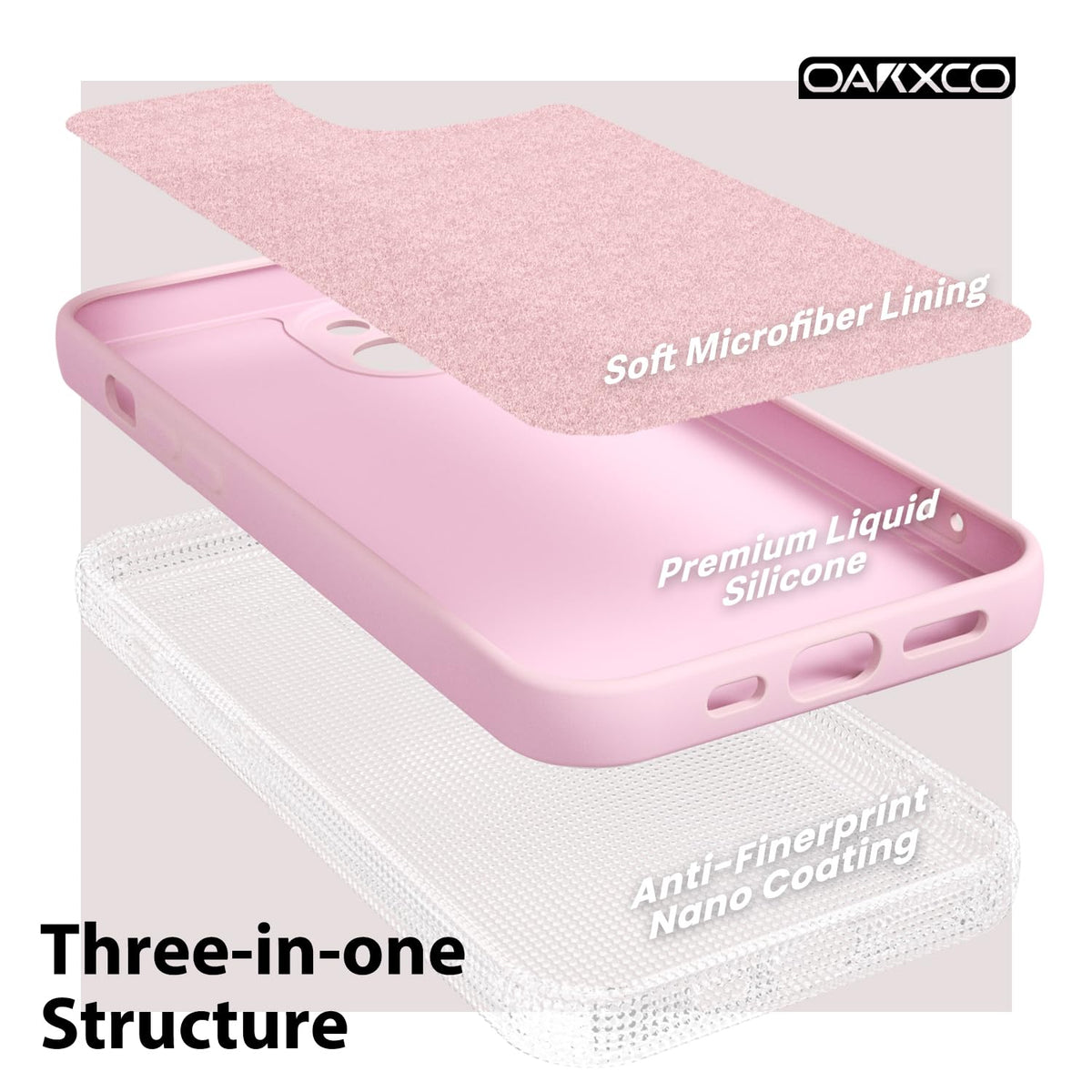 Q: What materials are used in the Oakxco iPhone 13 Mini case?A: The case is made from high-quality liquid silicone gel material, which is durable, easy to clean, and provides a soft touch, similar to baby skin. It also features a sturdy dual-layer design for enhanced protection.