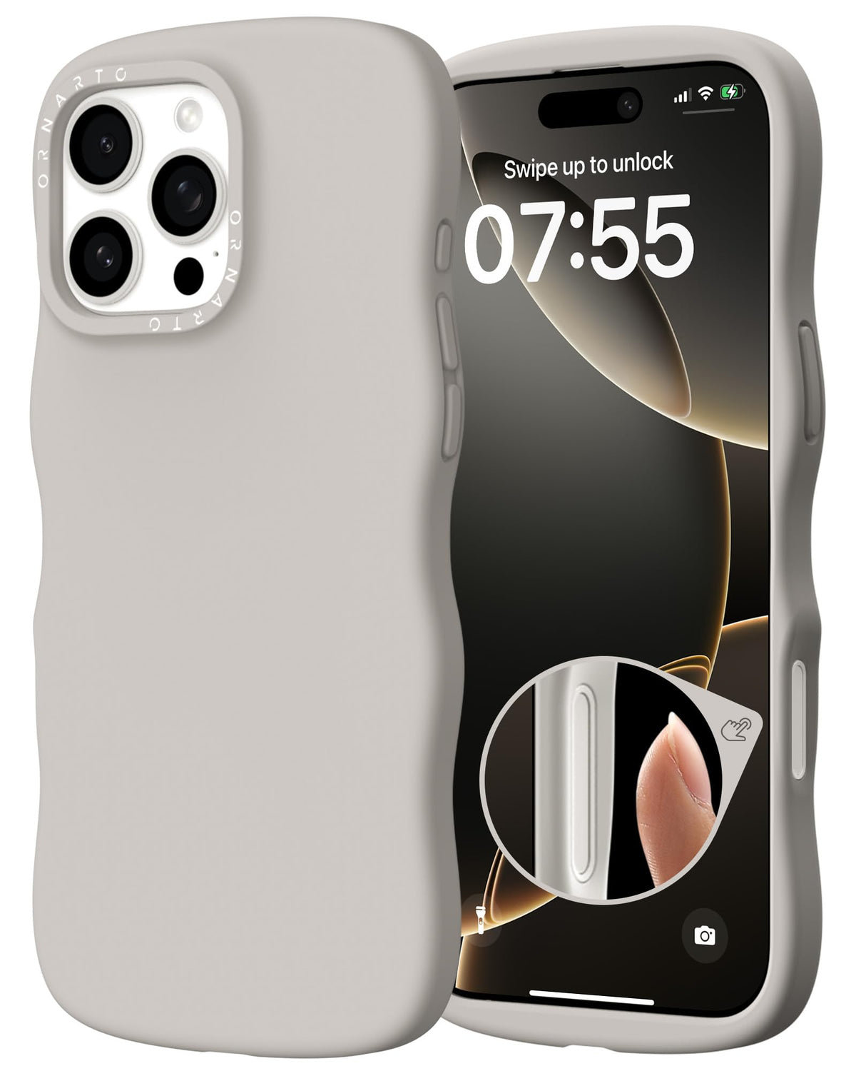 Ornarto For Iphone 16 Pro Max Case 6.9 - Cute Curly Wave Edge | Camera Control Button | Shockproof Protective Liquid Silicone 16