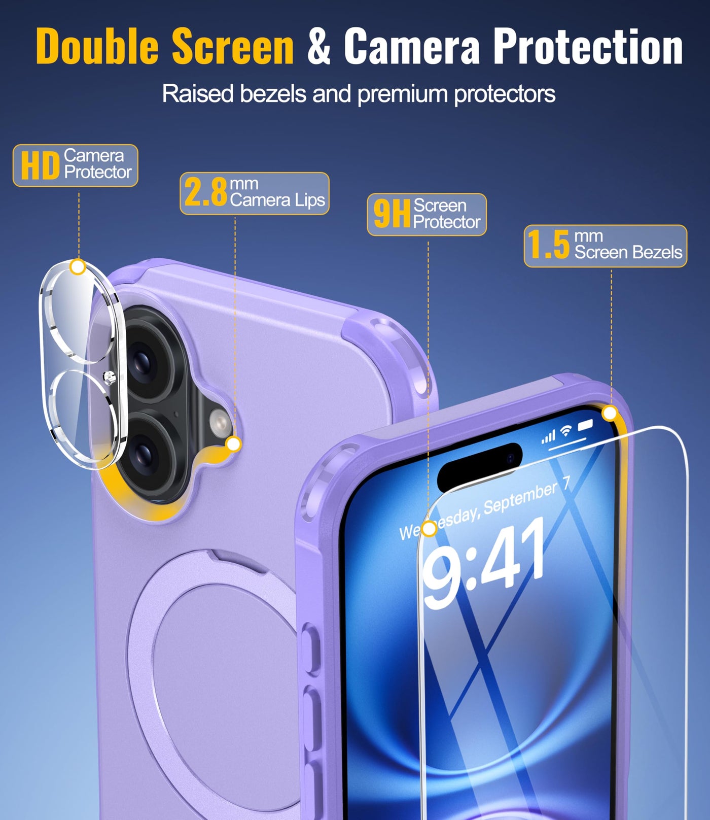 Oterkin Magnetic For Iphone 16 Plus Case Compatible With Magsafe [Foldable Invisible Stand][Tempered Glass Screen Protector & Ca