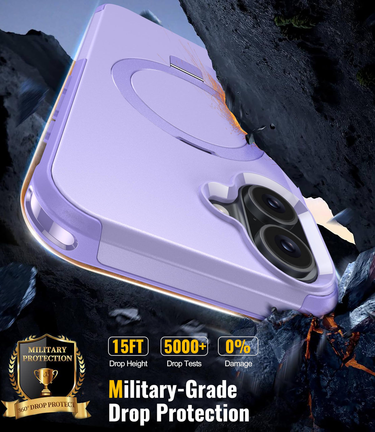 Q: What kind of protection does the Oterkin case provide for my iPhone 16 Plus?A: The Oterkin case offers 360° full body protection and is certified to exceed Military Grade Drop Test standards, surviving drops from up to 15FT. It features a dual-layer design and anti-collision corners to disperse impact forces effectively.
