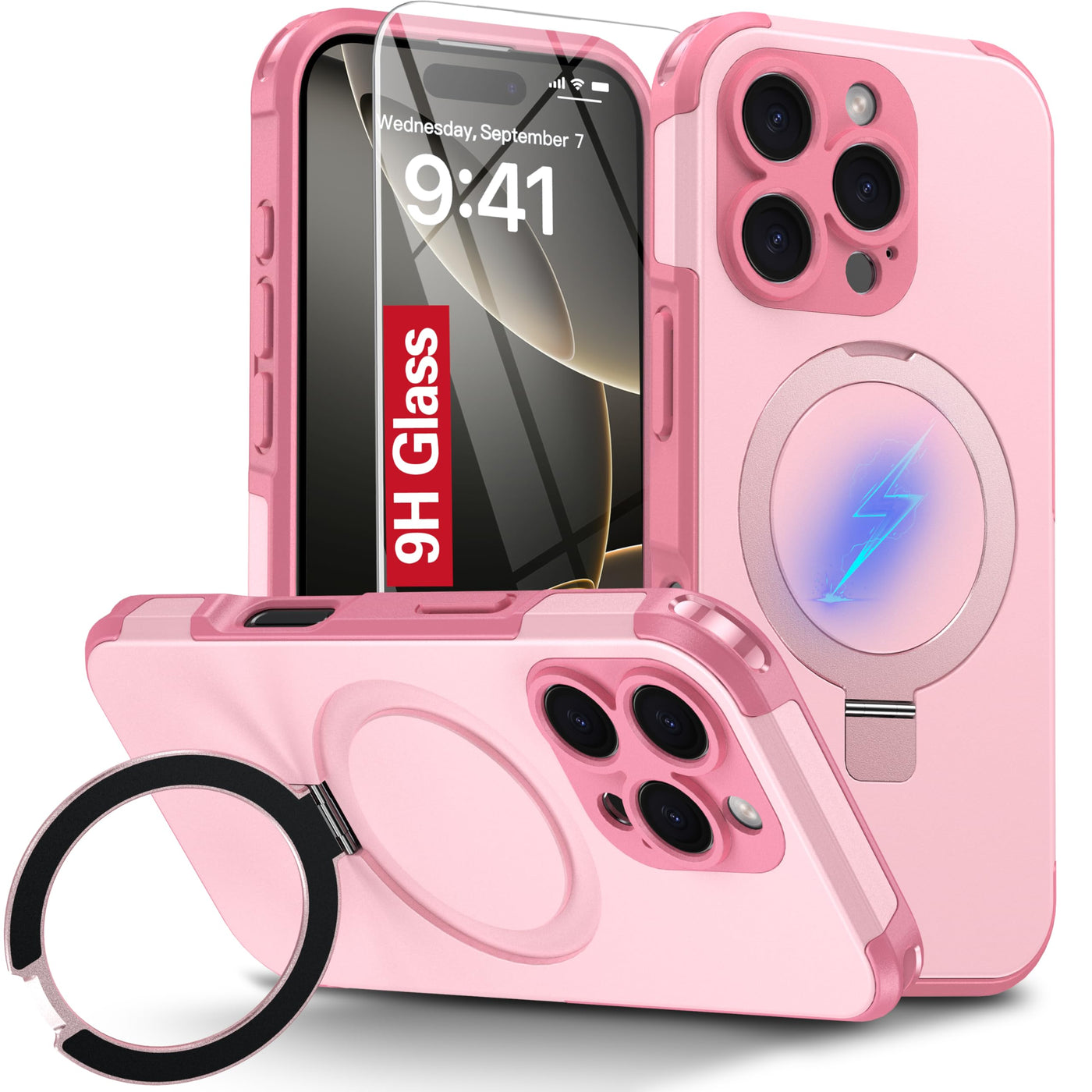 Oterkin Magnetic For Iphone 16 Pro Case Compatible With Magsafe [Foldable Invisible Stand][Tempered Glass Screen Protector & Ful