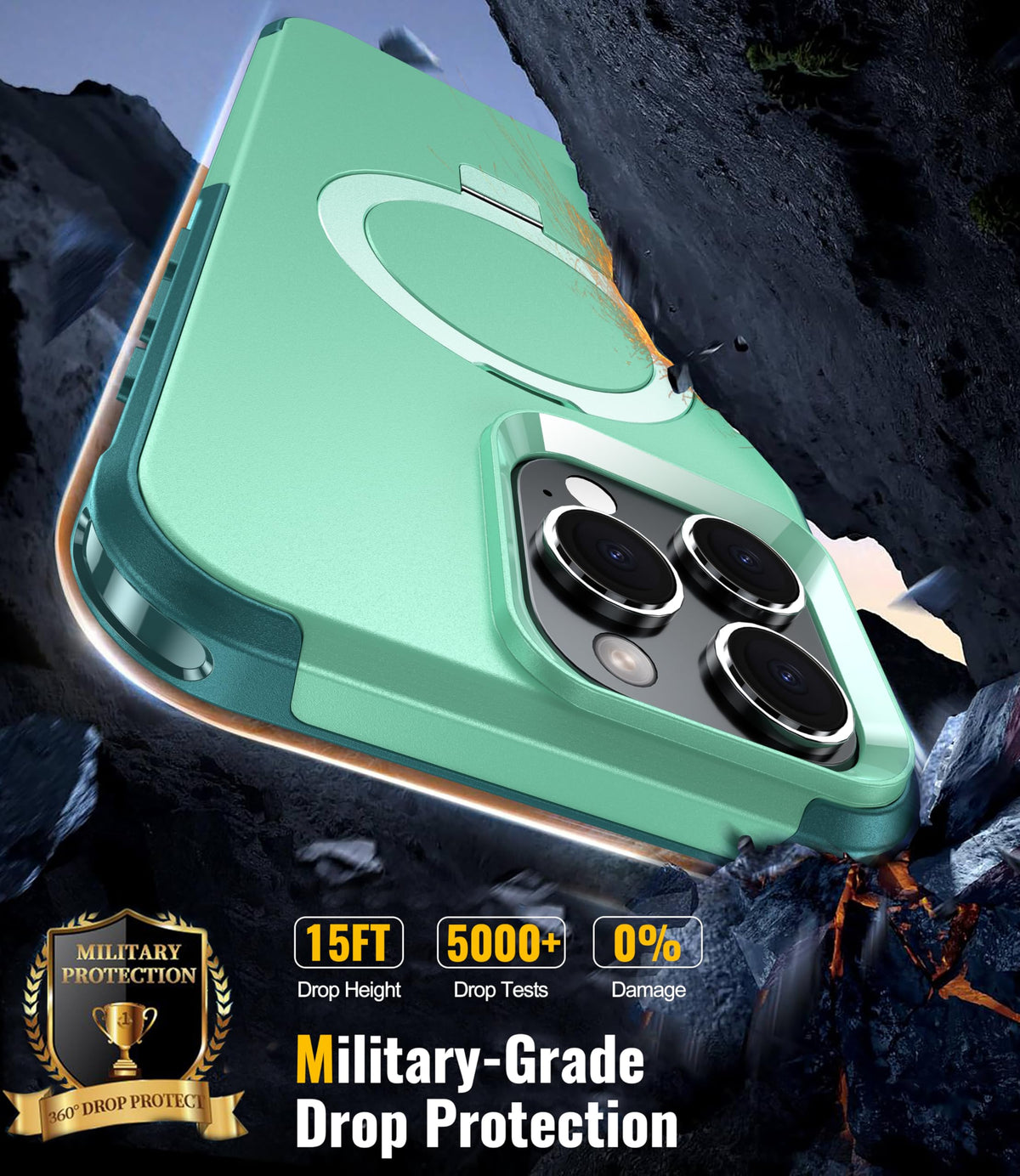 Oterkin Magnetic For Iphone 16 Pro Max Case Compatible With Magsafe [Foldable Invisible Stand][Tempered Glass Screen Protector &