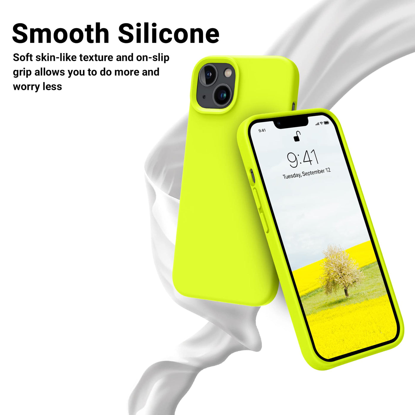 Otofly Designed For Iphone 14 Case, Silicone Shockproof Slim Thin Phone Case For Iphone 14 6.1 Inch (Fluorescent Yellow)