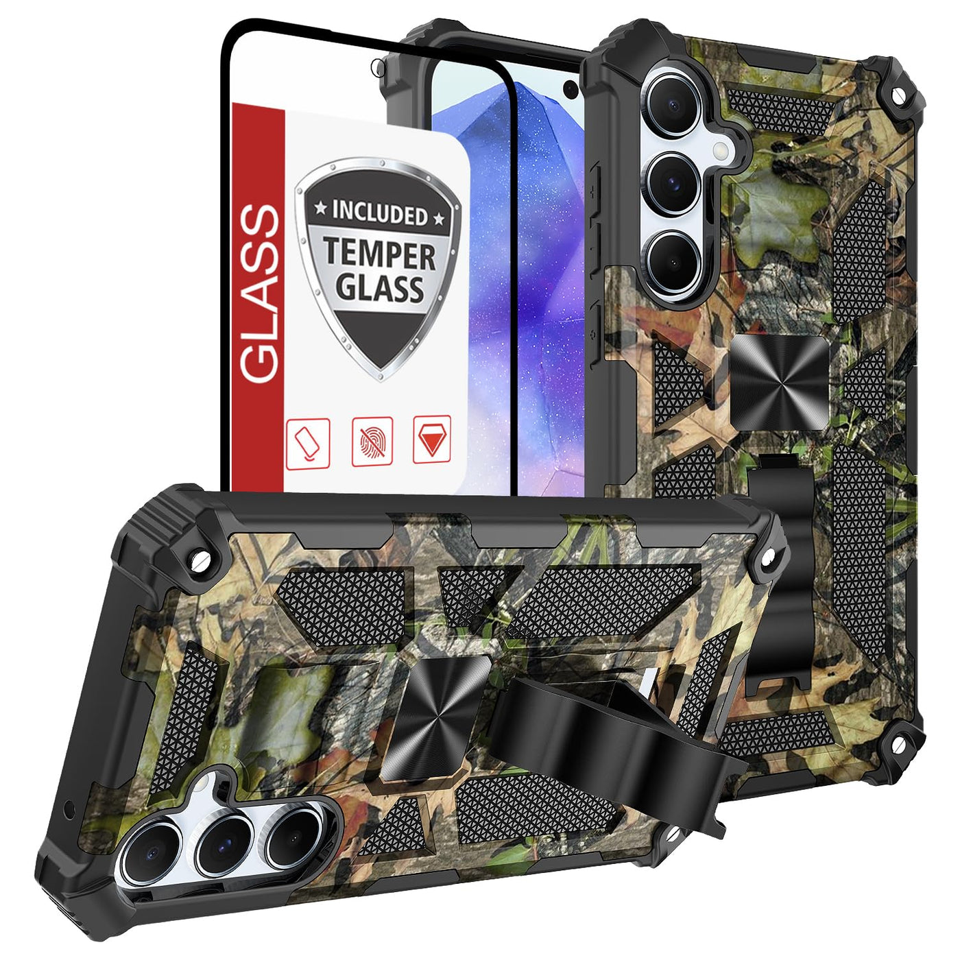Phone Case For Galaxy-A15-5G Case W/Tempered Glass Screen Protector(Full Coverage) [Full-Body][15Ft Mil-Grade][Built-In Kickstan