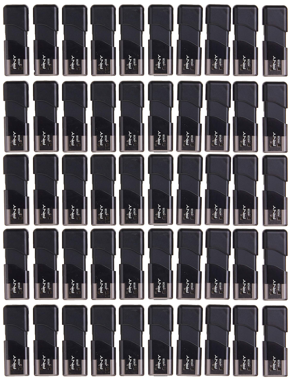 Pny 16Gb Attach 3 Usb 2.0 Flash Drive, 50-Pack, Black