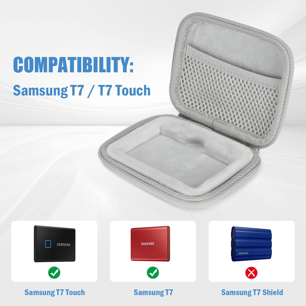 Compatible With Samsung T7 Portable Ssd / T7 Touch Portable Ssd 500Gb 1Tb 2Tb Ssd Usb 3.2 External Solid State Drives | Premium Hard Eva Exterior And Shock Absorbing Soft Lining Interior, Offers Double Protection Against Scratches, Dents, Bumps, And Drops | Designed With An Interior Mesh Pocket To Store Cable And Other Small Accessories | Smooth Zipper Design Allows Easy Access To Your Device And Accessories; Hand Strap For Easy Carrying Around | Comes With 2 Fastening Cable Ties, Perfect For Organizing Cables, Wires, And Cords