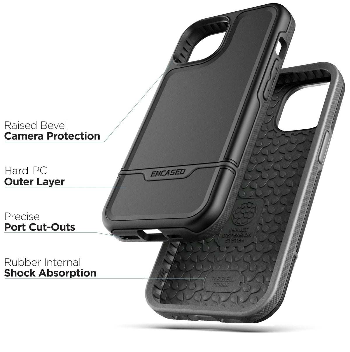 Encased Rebel Belt Case For Iphone 15 Pro Max Engineered To Protect When You Need It Most. The Rebel Is Designed To Exceed Tough Military Impact Standards And Has Been 10Ft Impact Tested To Give You Peace Of Mind. The Fully Bonded Dual-Layer Construction Provides Maximum Protection, While The Ergonomic Design Ensures Comfort And Confidence In Every Grip. Enjoy Seamless Functionality With Easy-To-Press Tactile Buttons And Easy Drop-In Installation. Compatible With Magsafe Enjoy The Convenience And Simplicity Of The Magnetic Ecosystem. Seamlessly Compatible With Magsafe Chargers, Wallets, Grips, Mounts, Power Banks And More. Secure-Fit Belt Clip Holster The Set Includes A Secure-Fit Companion Belt Clip Holster So Your Phone Is Always By Your Side. The Secure-Fit Top Locking Design Makes Inserting And Removing Your Phone A Breeze, And The Rotating Belt Clip Provides The Flexibility To Wear Your Phone Vertically Or Horizontally Based On Your Preference. Key Features: Compatible With Magsafe 10Ft Impact Rating Easy Installation With A Drop-In Design Responsive Easy-Press Buttons Retain The Original Tactile Click & Button Feel Fully Bonded 2-Layer Structure For Extreme Durability Precision Engineered Cutouts For Ports And Capture Button Lanyard Attachment Points On All 4 Corners Included Belt Holster With Rotating Belt Clip