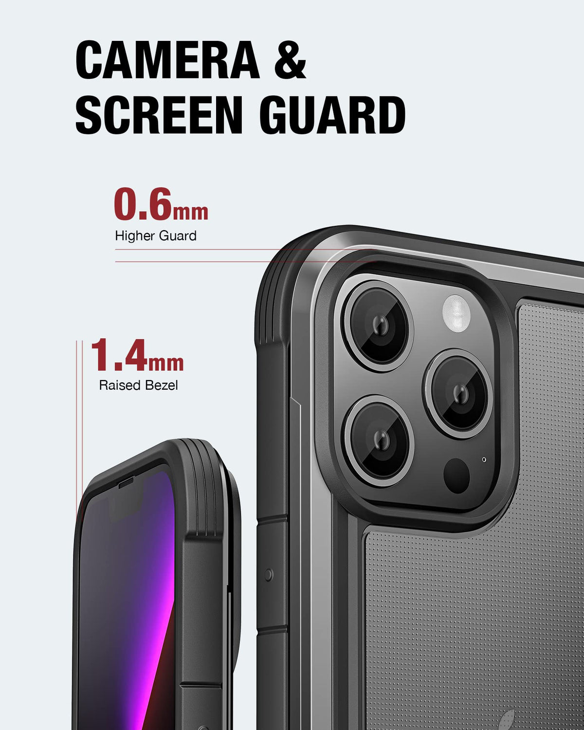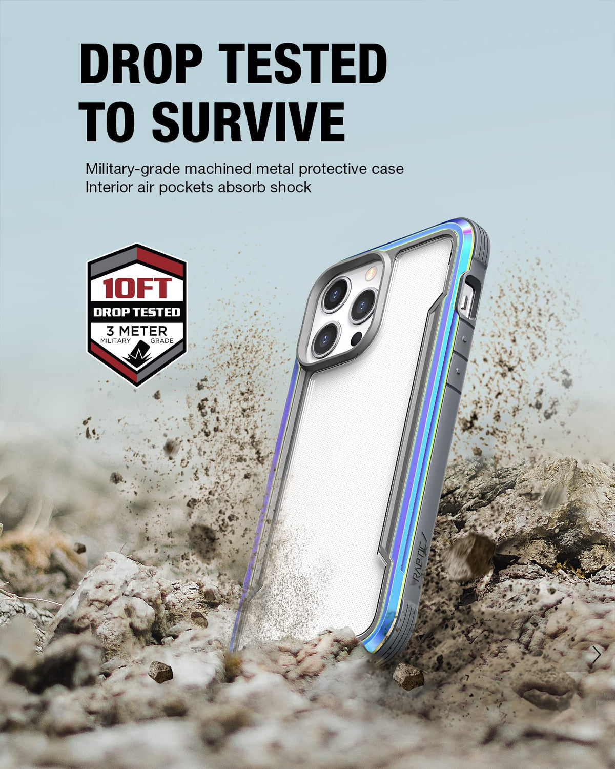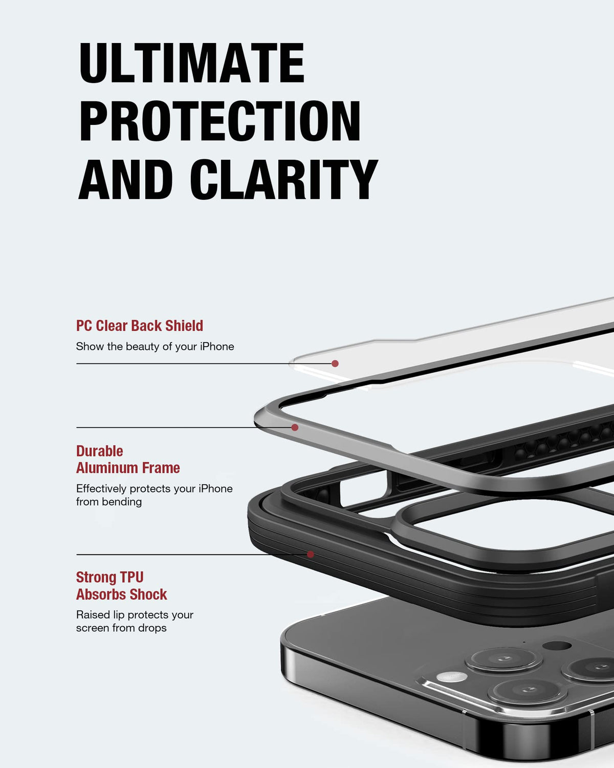 Raptic Shield For Iphone 13 Pro Max Case, Shockproof Protective Clear Case, Military 10Ft Drop Tested, Durable Aluminum Frame, A