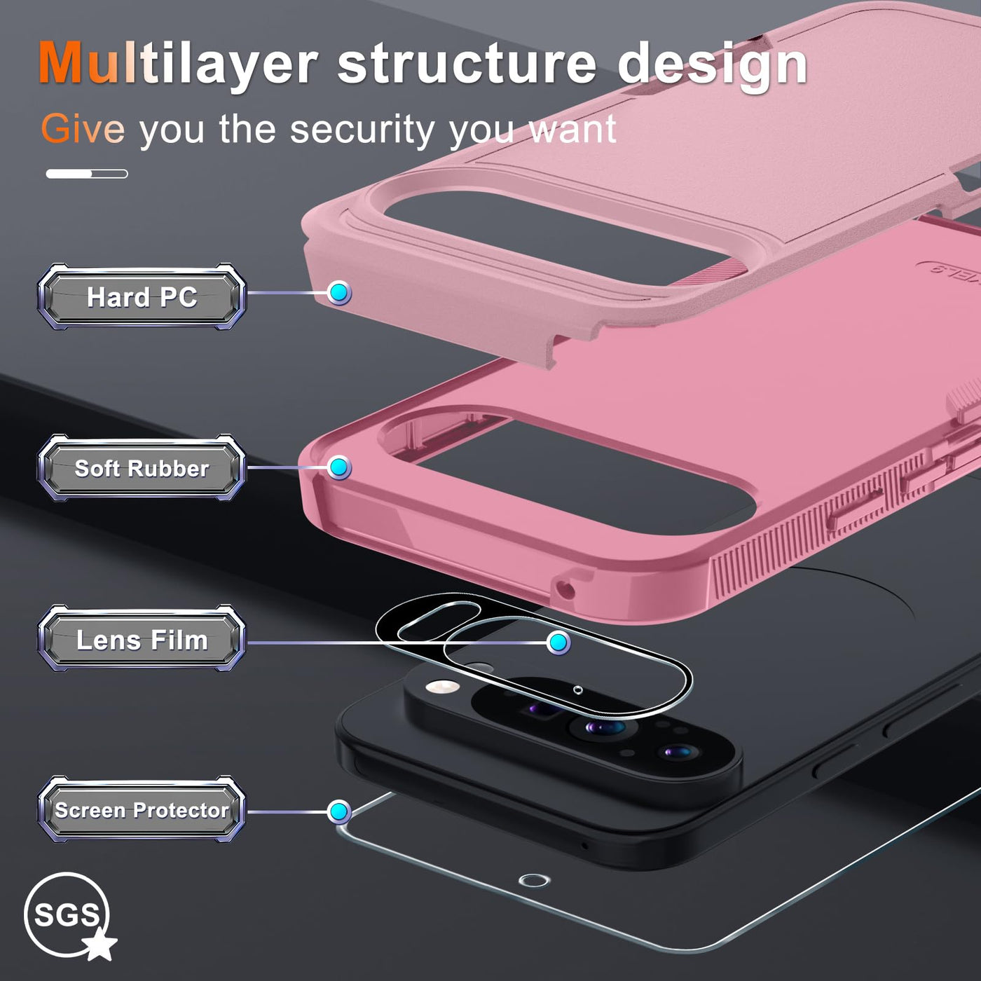 Rmocr Case For Google Pixel 9/9 Pro, Full Body Heavy Duty Rugged Shockproof Protective Phone Cover With Lanyard Strap, Tempered Glass Screen Protector And Camera Lens Cover