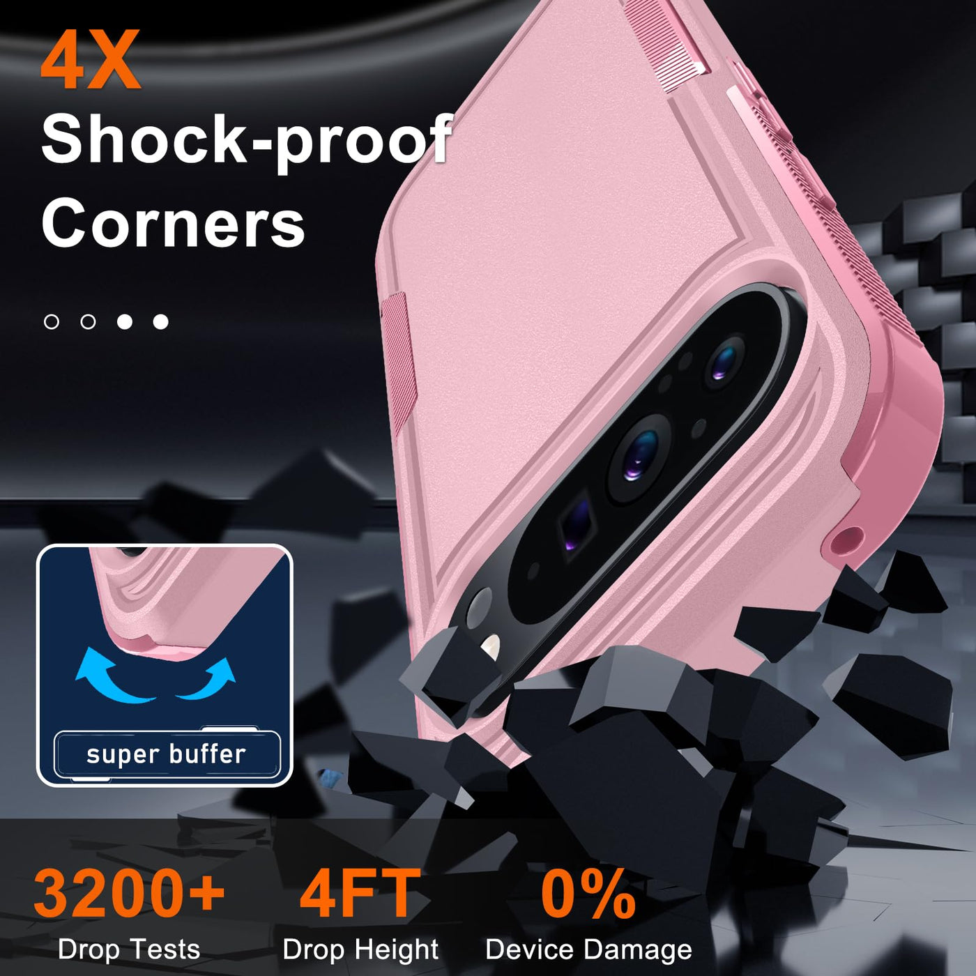 Rmocr Case For Google Pixel 9/9 Pro, Full Body Heavy Duty Rugged Shockproof Protective Phone Cover With Lanyard Strap, Tempered