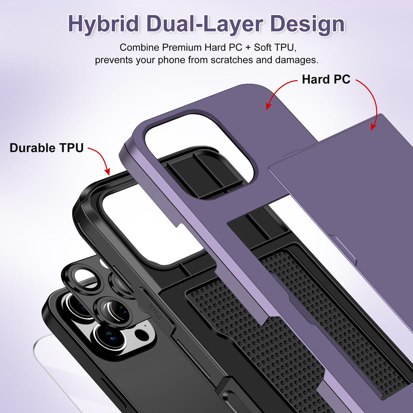 Samonpow For Iphone 16 Pro Case Wallet With Card Holder + 2 Screen Protector + 1 Camera Cover Full Body Heavy Duty Protective Du