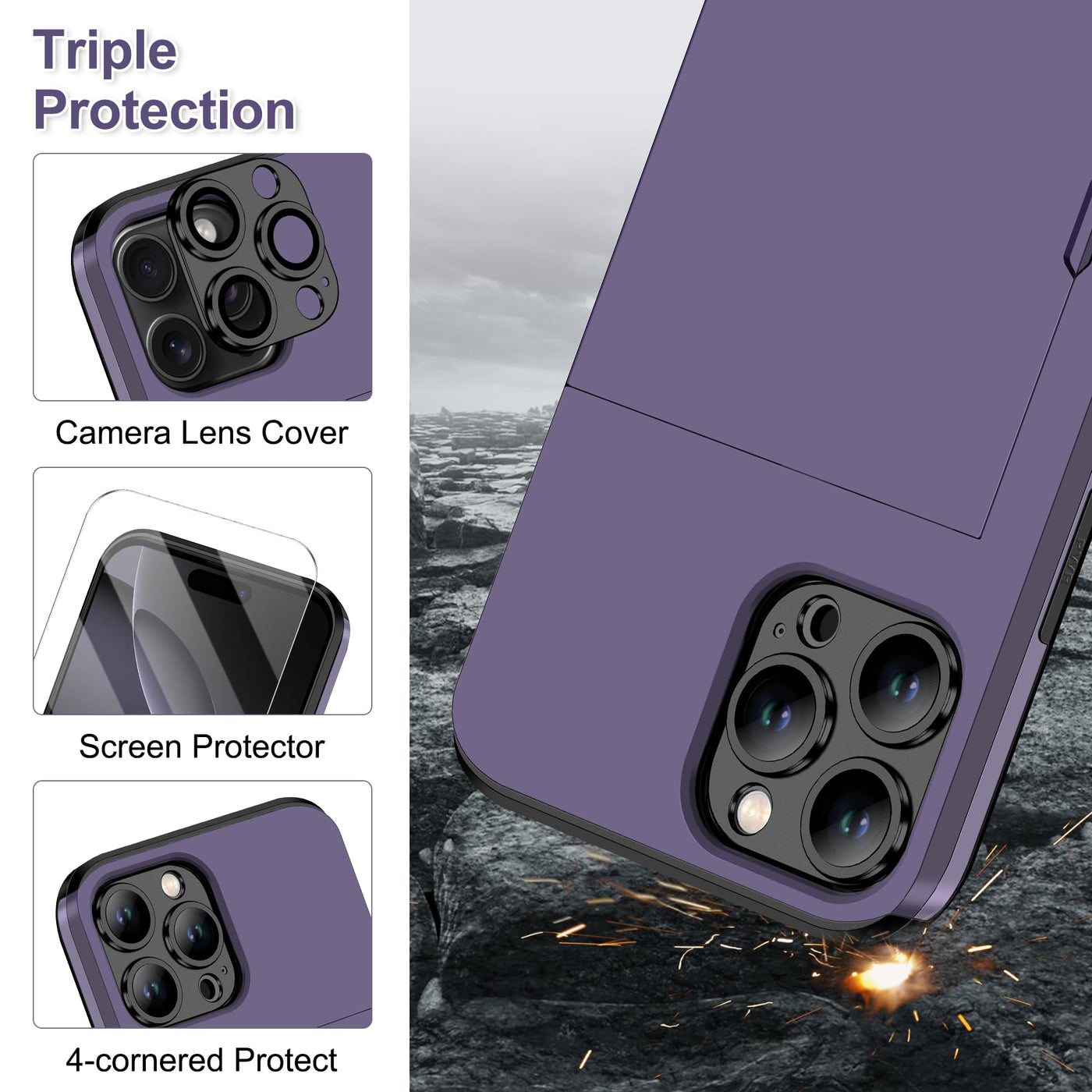 Samonpow For Iphone 16 Pro Max Case Wallet With Card Holder + 2 Screen Protector + 1 Camera Cover Full Body Heavy Duty Protectiv