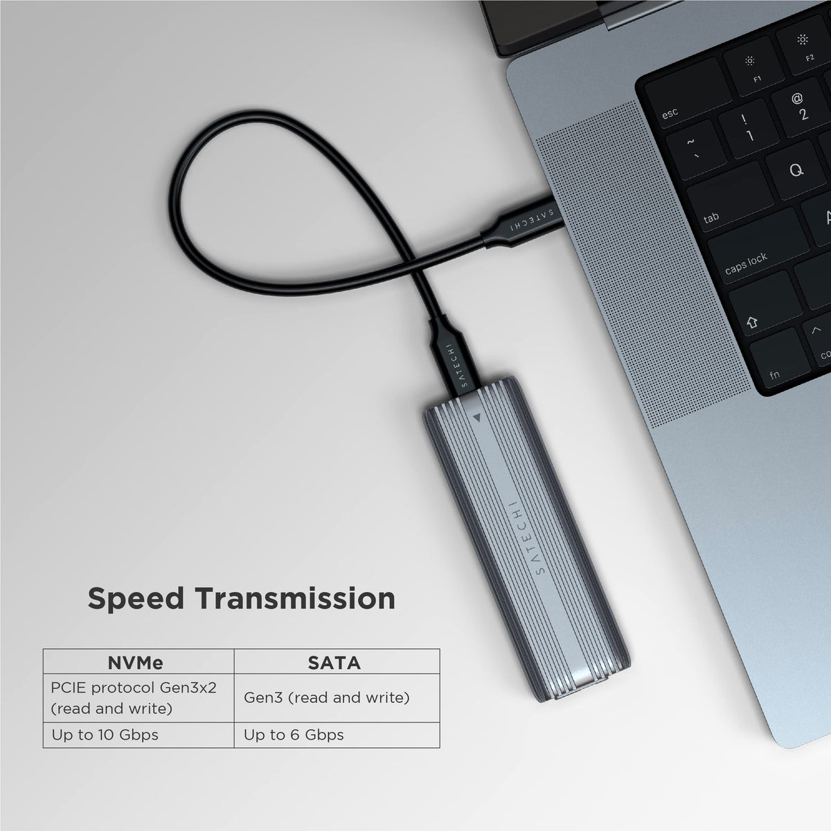 Tool-Free Nvme Ssd Enclosure Can Easily Connect A M.2 Nmve Ssds Or M.2 Sata Ssds With Your Computer To Expand Storage, Upgrade The System, Back Up Files, Retrieve And Recover Data, And Transfer Data. Plug And Play, No Driver Needed. M.2 Pcie Nvme And Sata Ssd Nvme Supports Pcie Gen3X2 Protocol With Read & Write Speeds Up To 10Gbps. Sata Supports Gen3 Protocol With Read & Write Speeds Up To 6Gbps.Tool-Free-Design Tool-Free Enclosure For M.2 Pcie Nvme And Sata Ssd That Allows A Quick And Easy Installation. Support System Supports Macos System: Macos X Yosemite/El, Capitan, Sierra, Monterey Or Above; Windows 7/8/10/11 Or Above; Linux: 4.1.12 Or Above. Compatible With Both Sata And Nvme In Sizes 2242/2260/2280, Such As M.2 Nvme/Sata Pcie B&M Key Ssd. Nvme And Sata Ssd Are Not Included.Importantnvme And Sata Ssd Are Not Included. Due To The Reason Of The M1 Cpu, M1 Macbooks, The Reading & Writing Speed Is 10% Lower Than An Ordinary Computer. The Host Device Also Needs To Support Uasp Protocol. If Using With A New Solid-State Drive, Please Ensure The Drive Is Properly Formatted To Support Your Host Device Os.The Ssd Capacity Is Up To 4Tb. Please Install Included Thermal Pad In Order To Dissipate Heat From The Enclosure. Normal Operating Temperatures: < 55 Celsius.2 Years Manufacturer Warranty
