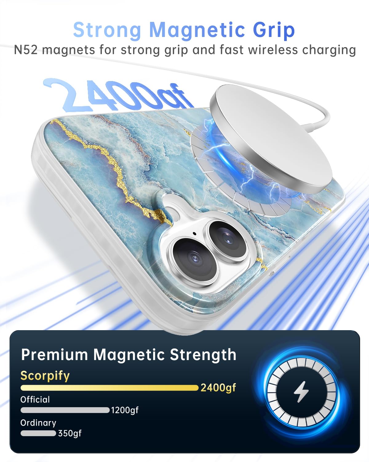 Scorpify Compatible With Iphone 16 Plus Case With Icelandic Blue Marble Design, Cute Magnetic Phone Cover For Women Girls And Me