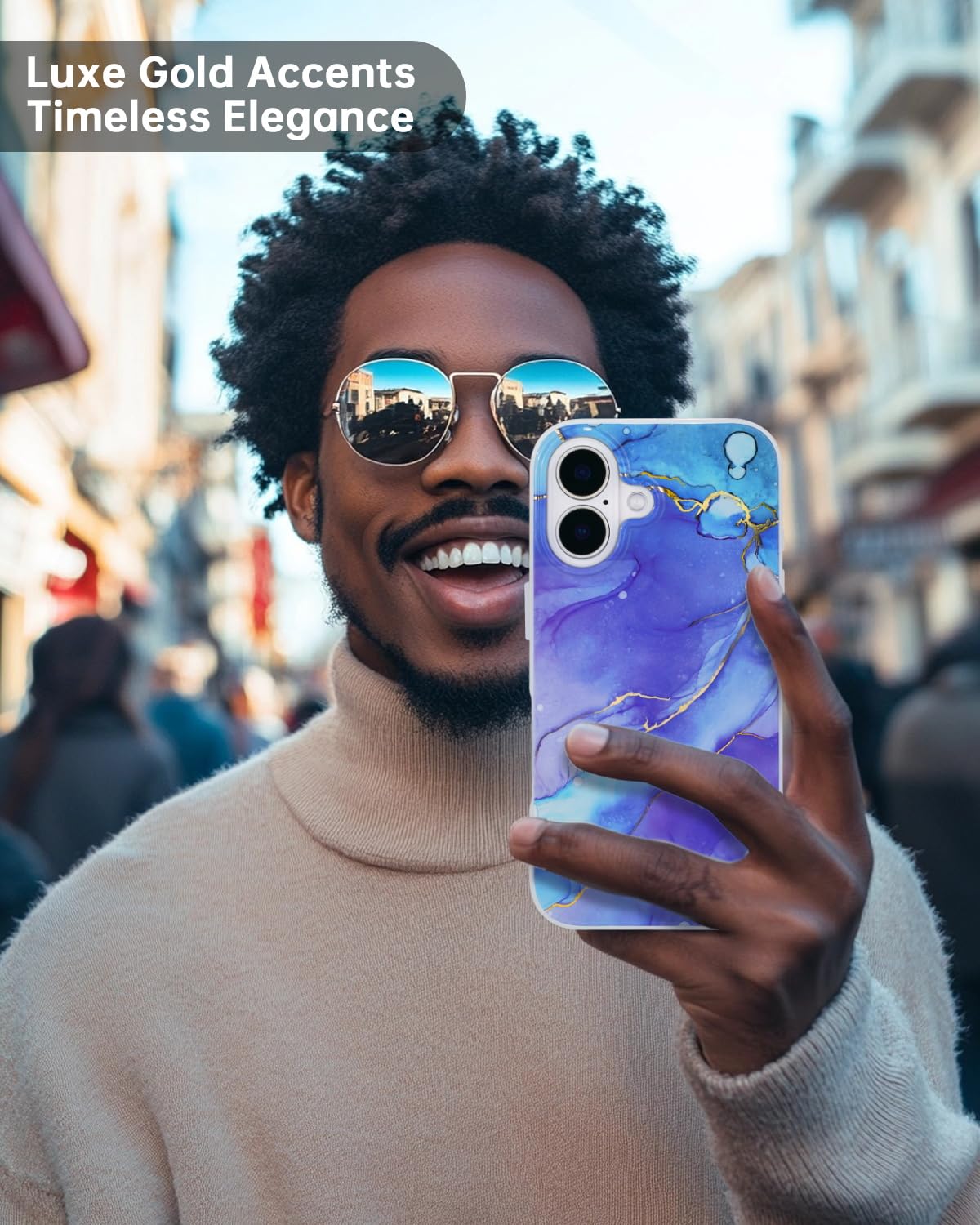 Scorpify For Iphone 16 Plus Case [Compatible With Magsafe] With Fantasy Blue Marble Design, Cute Magnetic Phone Cover For Women