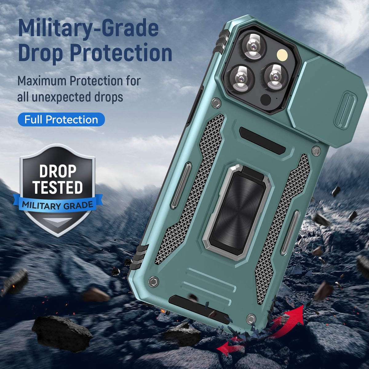 Sefing Phone Case For Iphone 15 Pro Max Case Iphone 15 Pro Max Phone Case With Slide Camera Cover, With Finger Ring Holder Stand