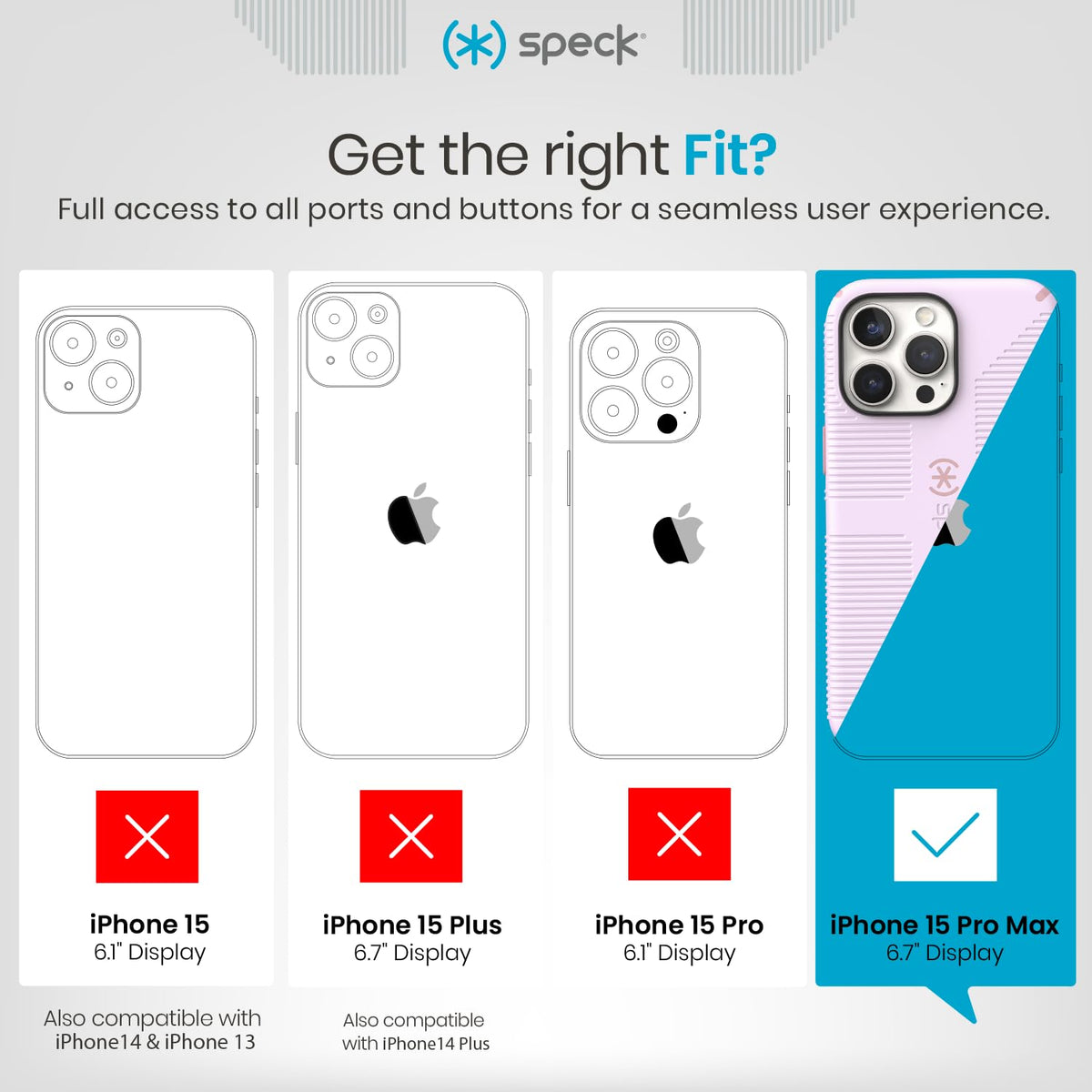 Q: Will this case fit my iPhone 14 or iPhone 13 Pro Max?A: Absolutely! The Speck MagSafe Case is universally compatible with all 6.7-inch models, including the iPhone 15 Pro Max, iPhone 14 Pro Max, and iPhone 13 Pro Max, providing a perfect fit and access to all ports and buttons.