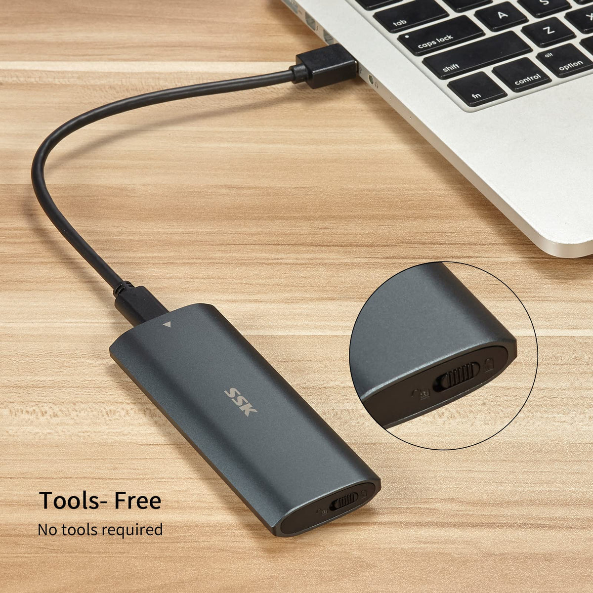 Ssk Aluminum M.2 Nvme Sata Ssd Enclosure Adapter, Tool Free External Ssd Reader Usb C 3.1/3.2 Gen 2 10Gbps Pcie, 6Gbps Sata M Key B+M Key M.2 Enclosure, Support Uasp Trim For 2230/2242/2260/2280