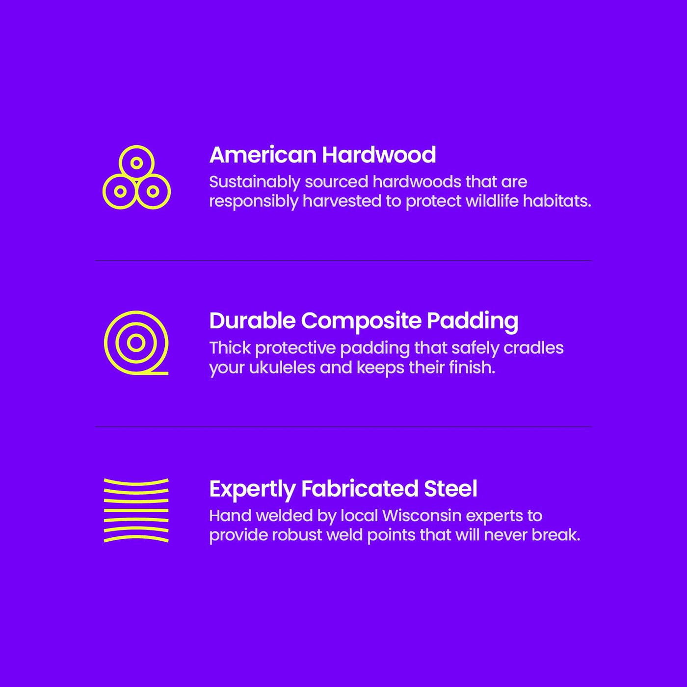 Vertically Displays Your Ukulele Or Mandolin With A Padded Pivoting Cradle. Real North American Hardwood Offers Beautiful & Unique Wood Grain, No 2 Hardwood Blocks Are Identical. To Be Mounted On A Flat Wall Surface. Your Instrument Is A Work Of Art And Should Be Displayed As Such. Having It Within Reach Also Enables Spontaneous Practice Whenever The Inspiration Strikes.