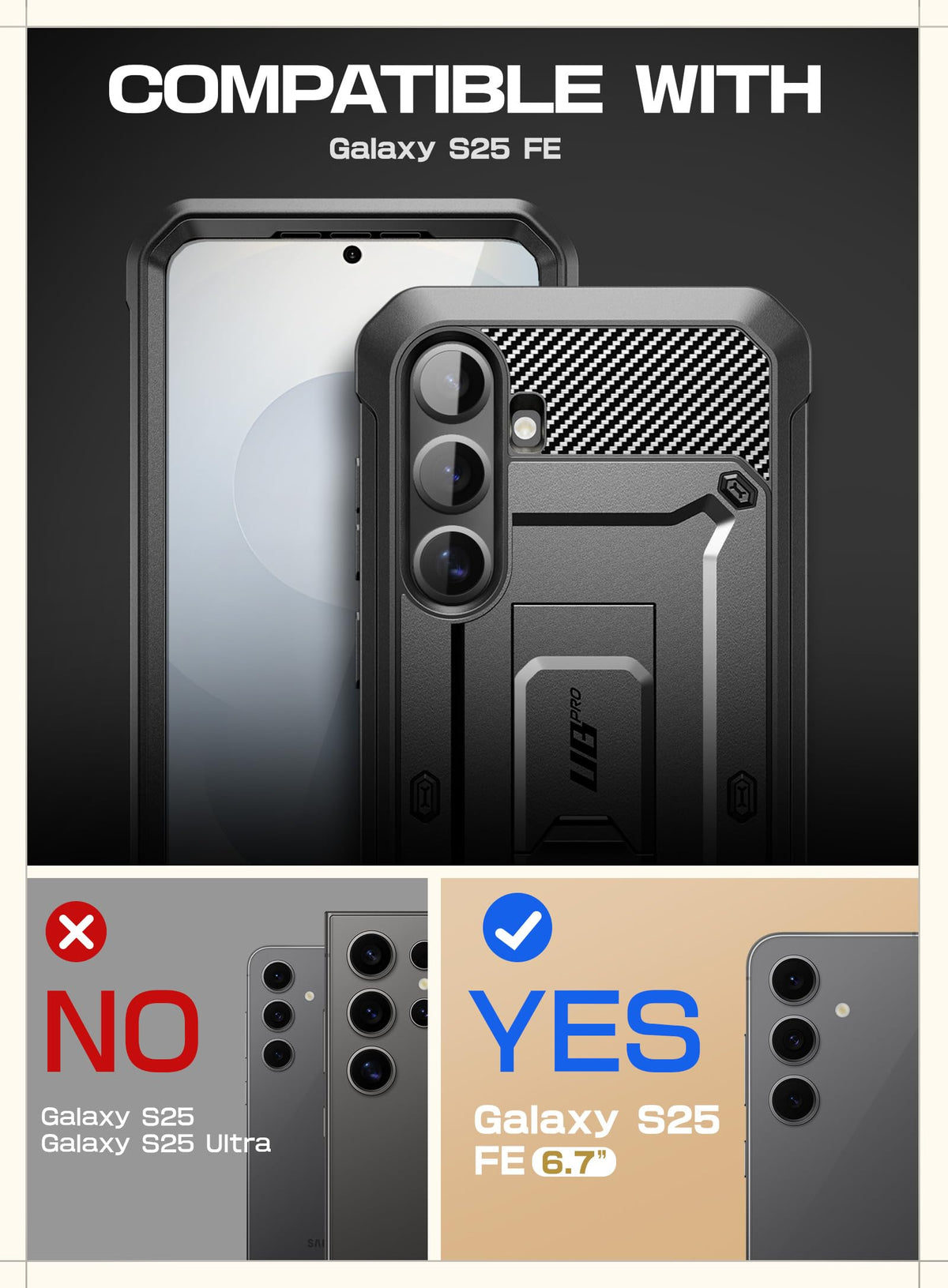 Key Features:&Nbsp; [Drop Tested]:Winner Of Cnets Best Case Scenario Drop Test. This Dual-Layer System Fits Together Securely For The Ultimate Defense Against Dropping Damage.&Nbsp; [Design]: Designed Exclusively For The Galaxy S25 Fe. A Dual-Layer Shock-Absorbing Frame Combined With A No-Slip Grip Means Your Phone Has No Weak Spots. [Built-In Screen Protector]: Guards Against Scratches Without Compromising Sensitivity. [Rotatable Holster]: Experience User-Friendly Convenience With An Included Detachable Rotating Holster. [Precise Cut-Outs]: Exact Cutouts Allow For Easy Access To All Features And Ports.&Nbsp; Trust Supcase Unicorn Beetle Pro To Protect Your Phone While Working, Traveling Or During Outdoor Activities. Whats In The Package?&Nbsp; 1X Supcase Unicorn Beetle Pro Protective Case For Samsung Galaxy S25 Fe 2025 Release.