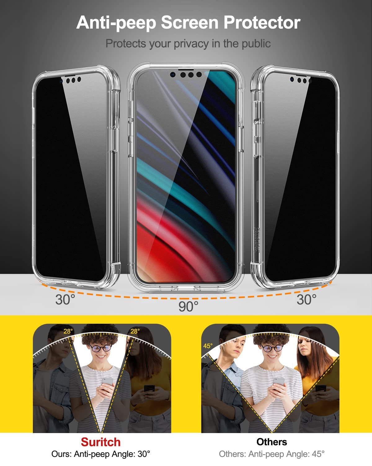 Suritch Compatible With Iphone 13 Pro Max Clear Case,[Privacy Screen Protector] Anti Spy Film Full Body Protection Shockproof Bu
