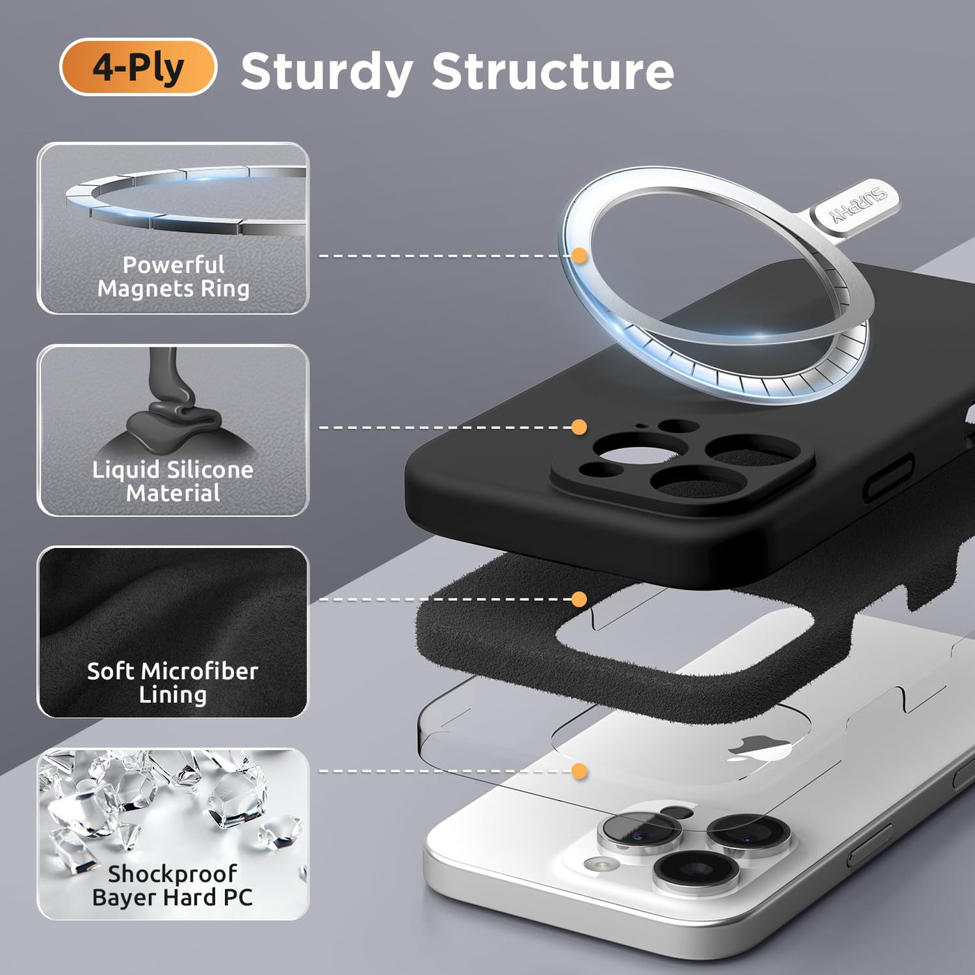 Surphy Designed For Iphone 16 Pro Case Compatible With Magsafe (6.3 Inch 2024), Liquid Silicone Phone Case (Camera Protective, Soft Microfiber Lining), Black