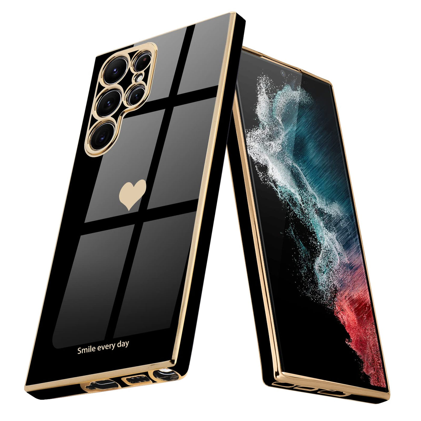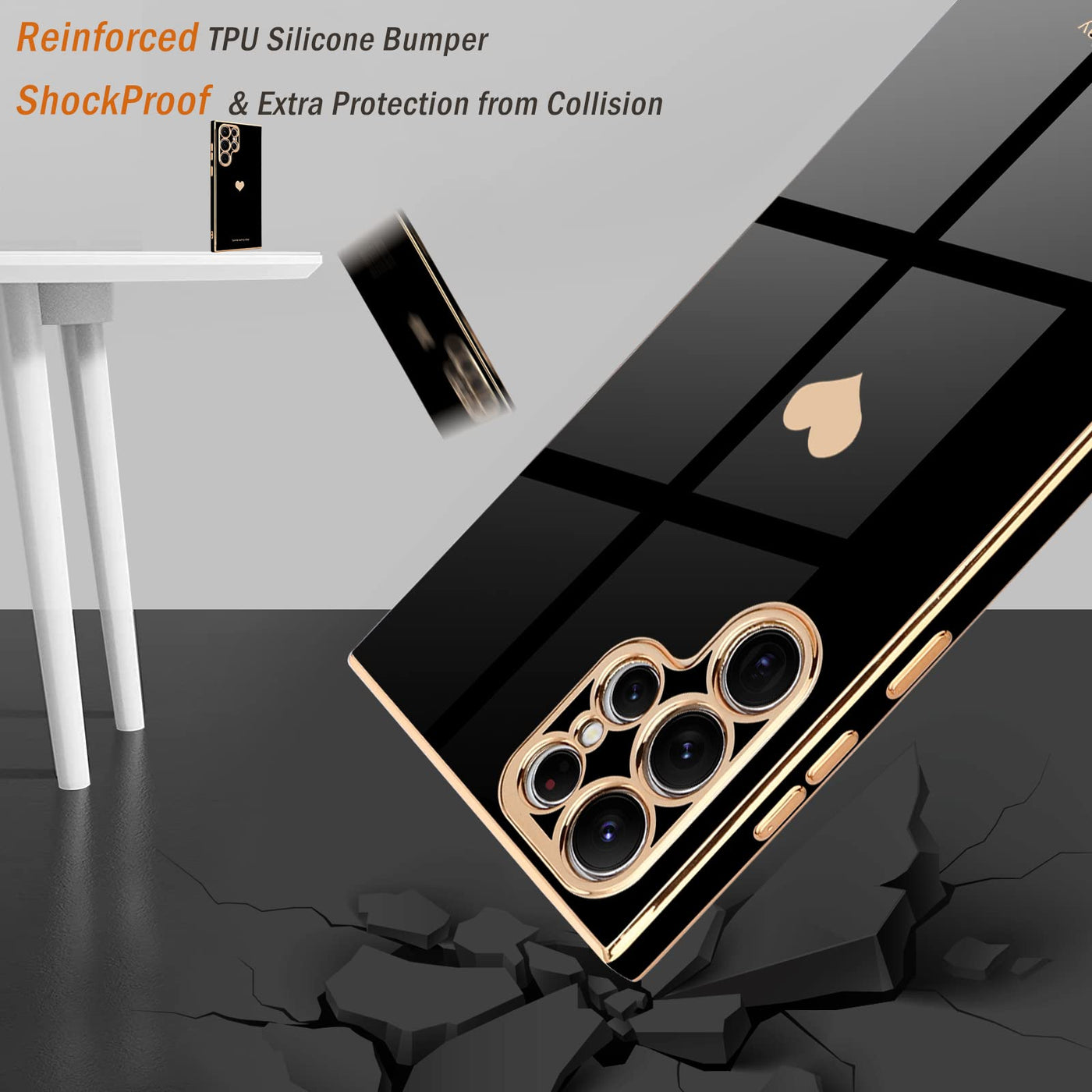 Teageo Galaxy S22 Ultra 5G Case Cute Love Heart, Luxury Bling, Soft Silicone Bumper, Camera Protection, Black