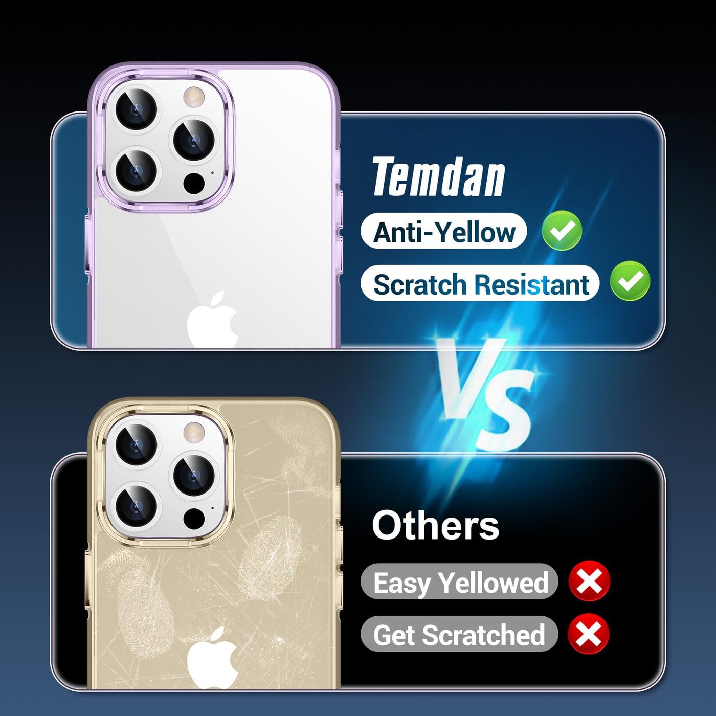 Q: Is the Temdan case for iPhone 15 Pro truly anti-yellowing?A: Yes, the Temdan case features an AF anti-fingerprints electroplate coating and an anti-oxidation layer, which effectively blocks 99.9% of ultraviolet rays, helping to maintain its clarity and prevent yellowing over time.