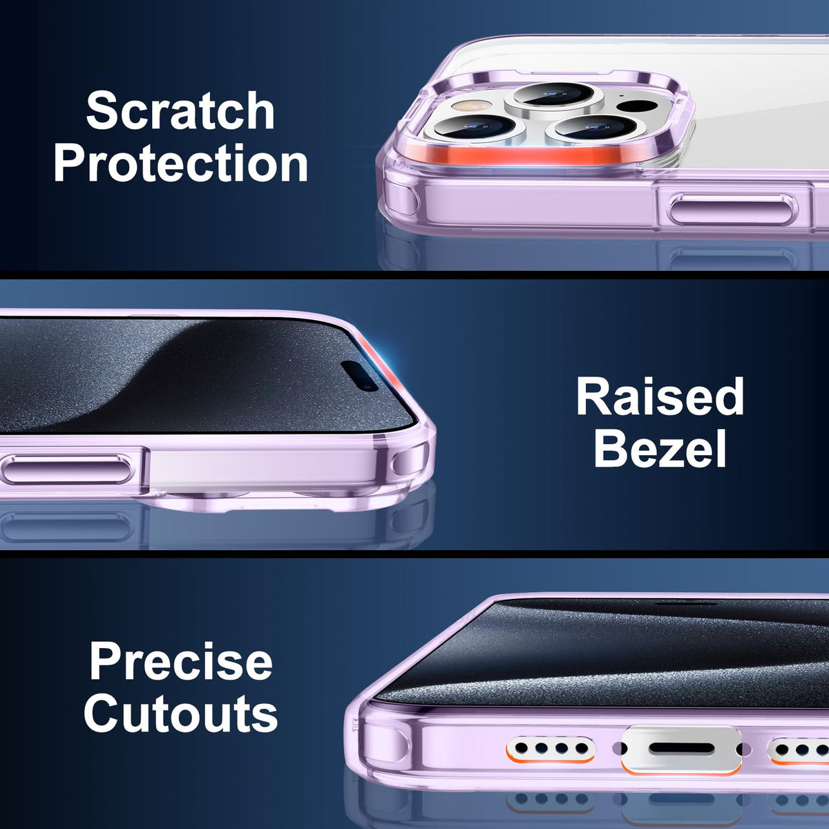 Temdan Designed For Iphone 15 Pro Case Clear,[Anti-Yellowing][10Ft Military Grade Drop Protection][Anti-Scratch]Slim Fit Yet Protective Shockproof Bumper Phone Case 6.1 Inch 2023-Purple/Clear