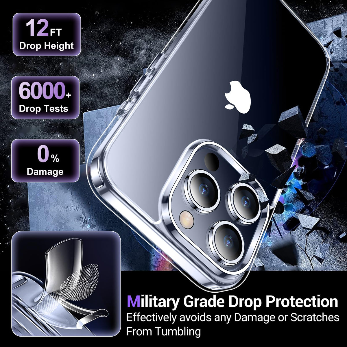 Temdan Designed For Iphone 15 Pro Max Case Clear, [Crystal Clear][Non Yellowing][Military Grade Drop Protection] Slim Shockproof