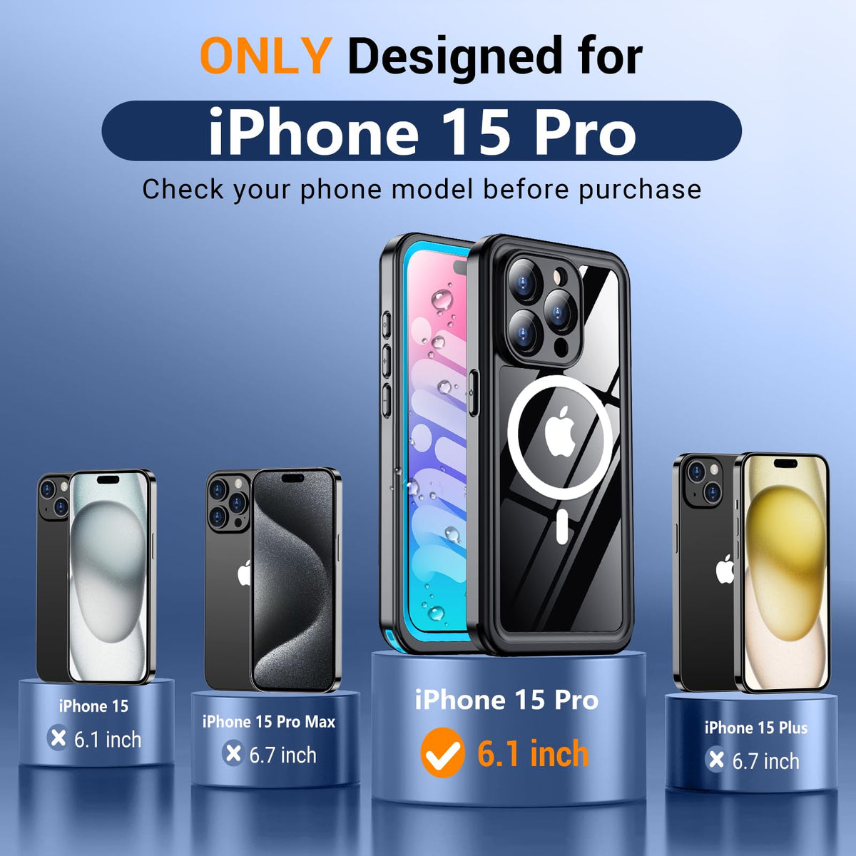 Temdan Magnetic For Iphone 15 Pro Case Waterproof,Built In Screen Protector[Ip68 Underwater][15Ft Military Dropproof][Dustproof]
