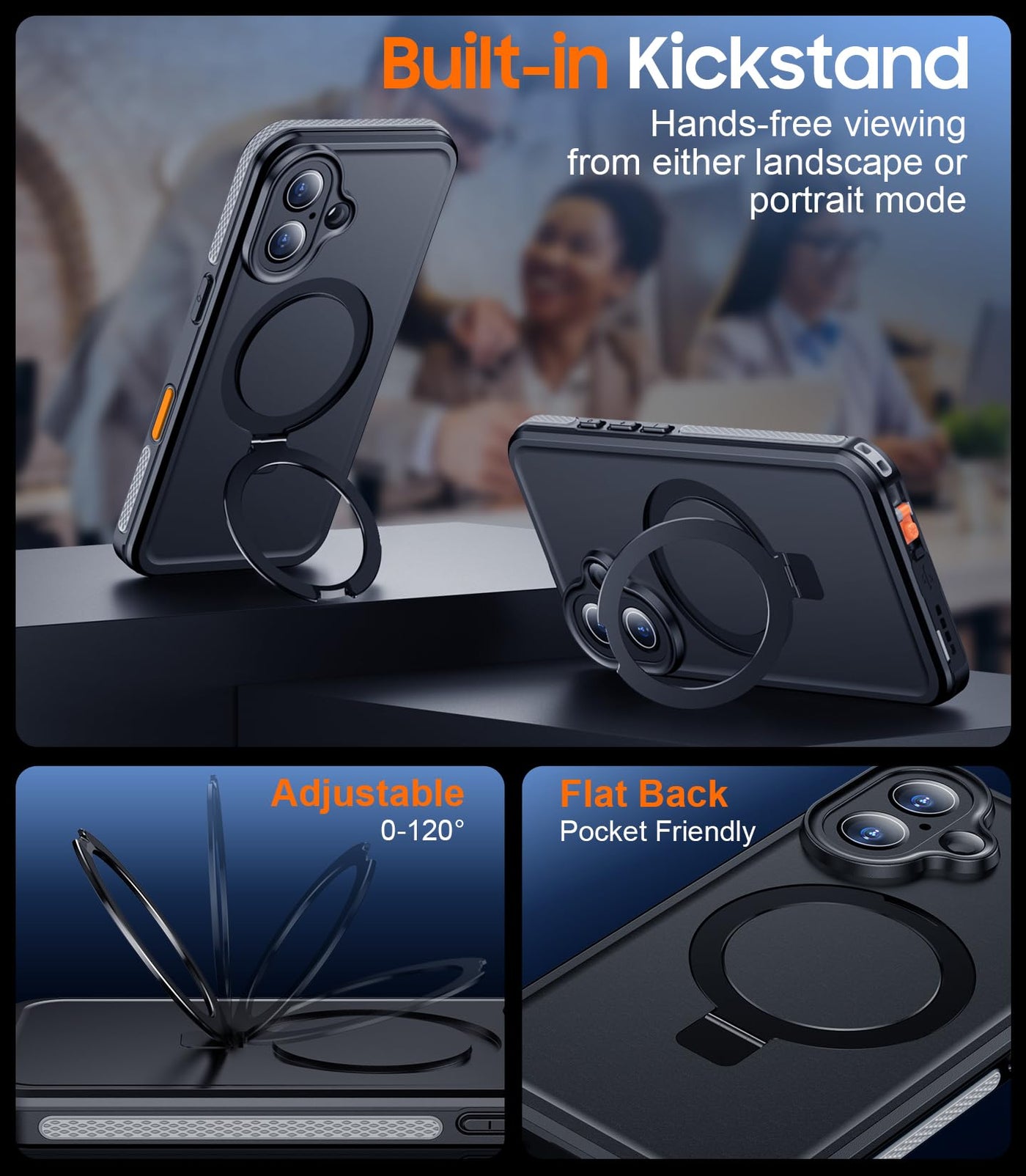 Temdan Magnetic For Iphone 16 Case Waterproof, [Built In Ring Invisible Stand & Screen Protector][Ip68 Underwater][Dropproof][Du
