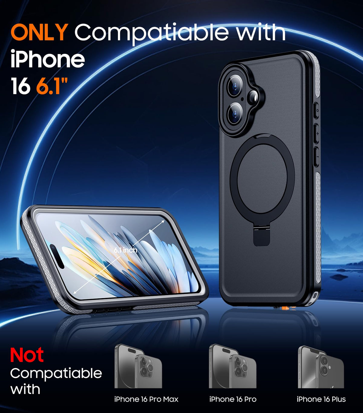 Q: Is the Temdan Magnetic for iPhone 16 case waterproof?A: Yes, the Temdan Magnetic case is IP68 waterproof certified, allowing it to be submerged up to 6.6 feet (1.5 meters) for up to 30 minutes, making it ideal for outdoor activities like swimming and snorkeling.
