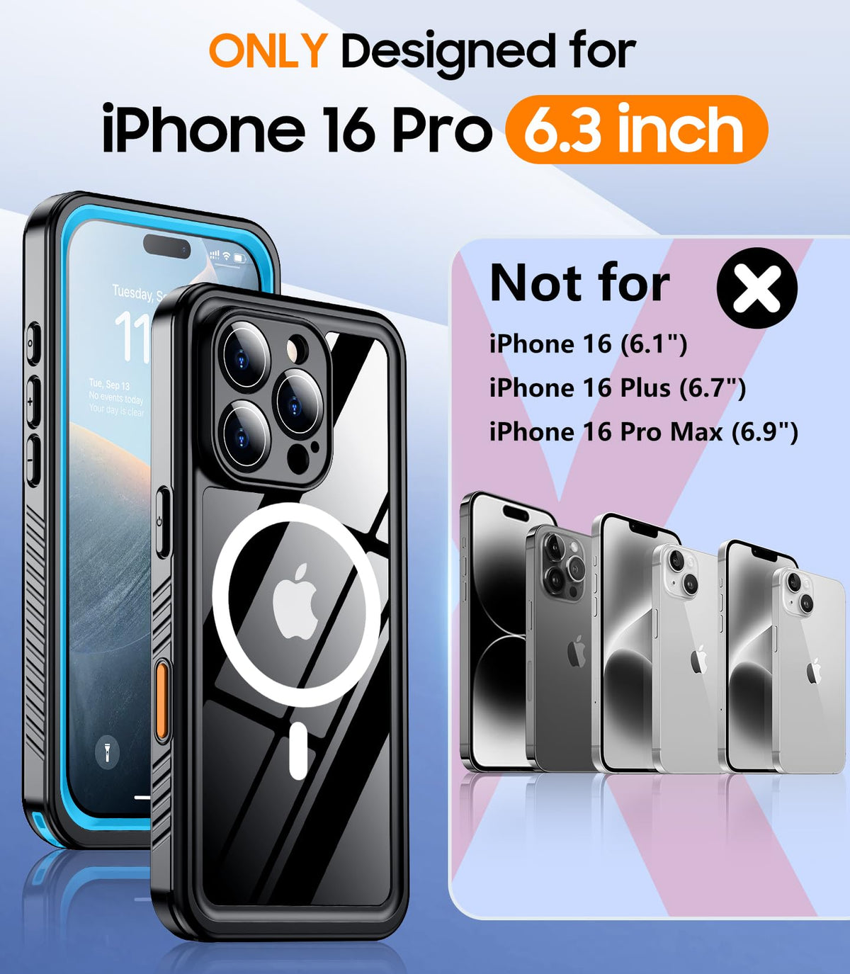 Q: Is the Temdan Magnetic iPhone 16 Pro Case truly waterproof?A: Yes, the Temdan Magnetic iPhone 16 Pro Case is certified with an IP68 waterproof rating, allowing it to be submerged in water up to 10ft/3m for one hour, ensuring protection against water, dust, and dirt.
