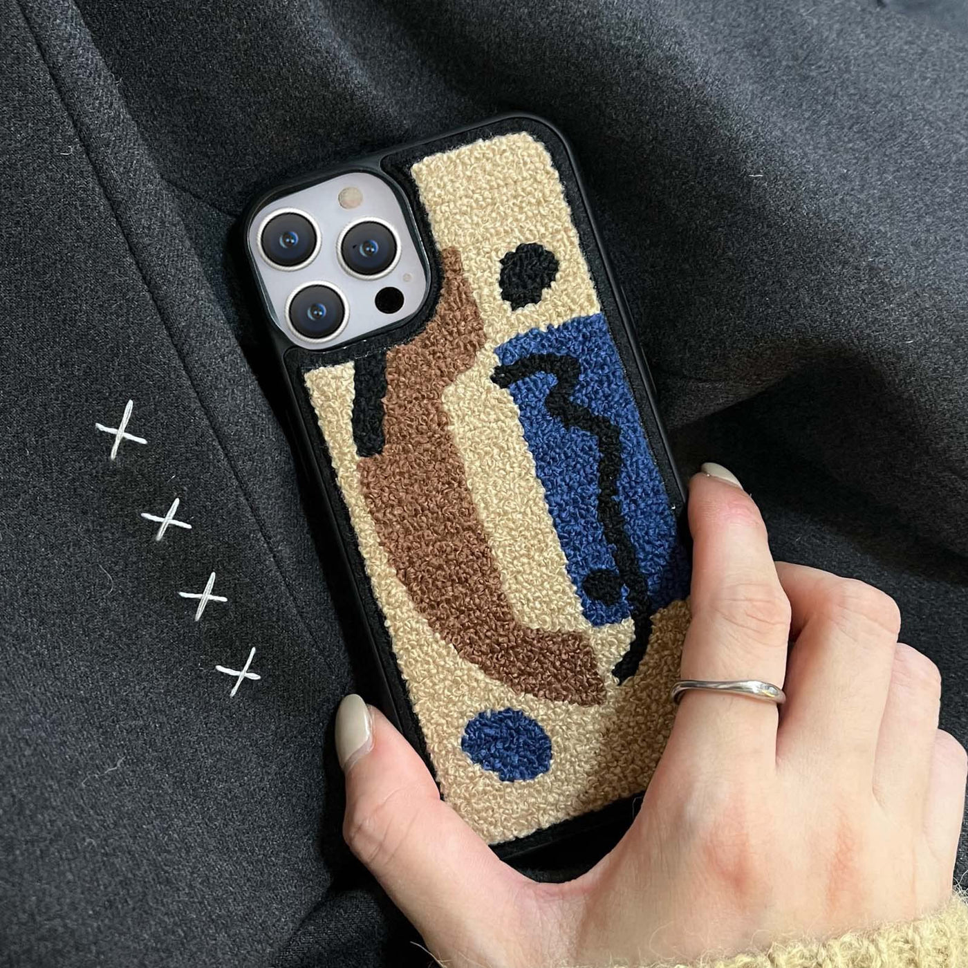 Tewwsdi Line Art Geometric Patterns Phone Case Compatible With Iphone 13Pro Max 6.7Inch,Warm Soft Fluffy Towel Embroidery Cover,