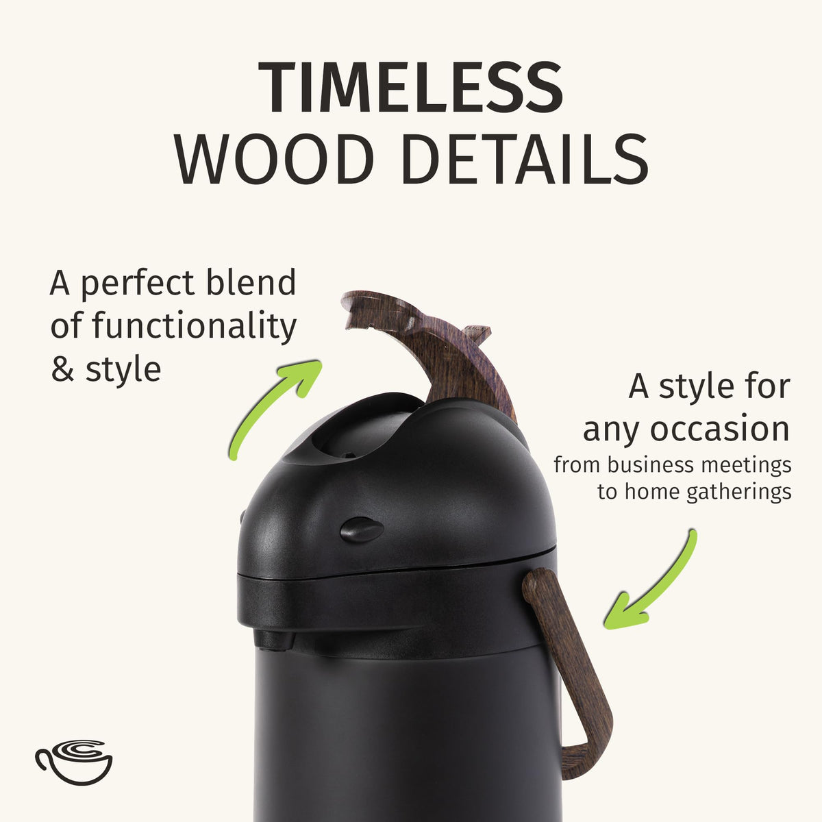 Thermal Coffee Carafe 101Oz W/Wood Trim, Keeps Coffee Hot For 12Hrs & Cold For 36Hrs Premium Stainless Steel Carafe For Hot Liqu