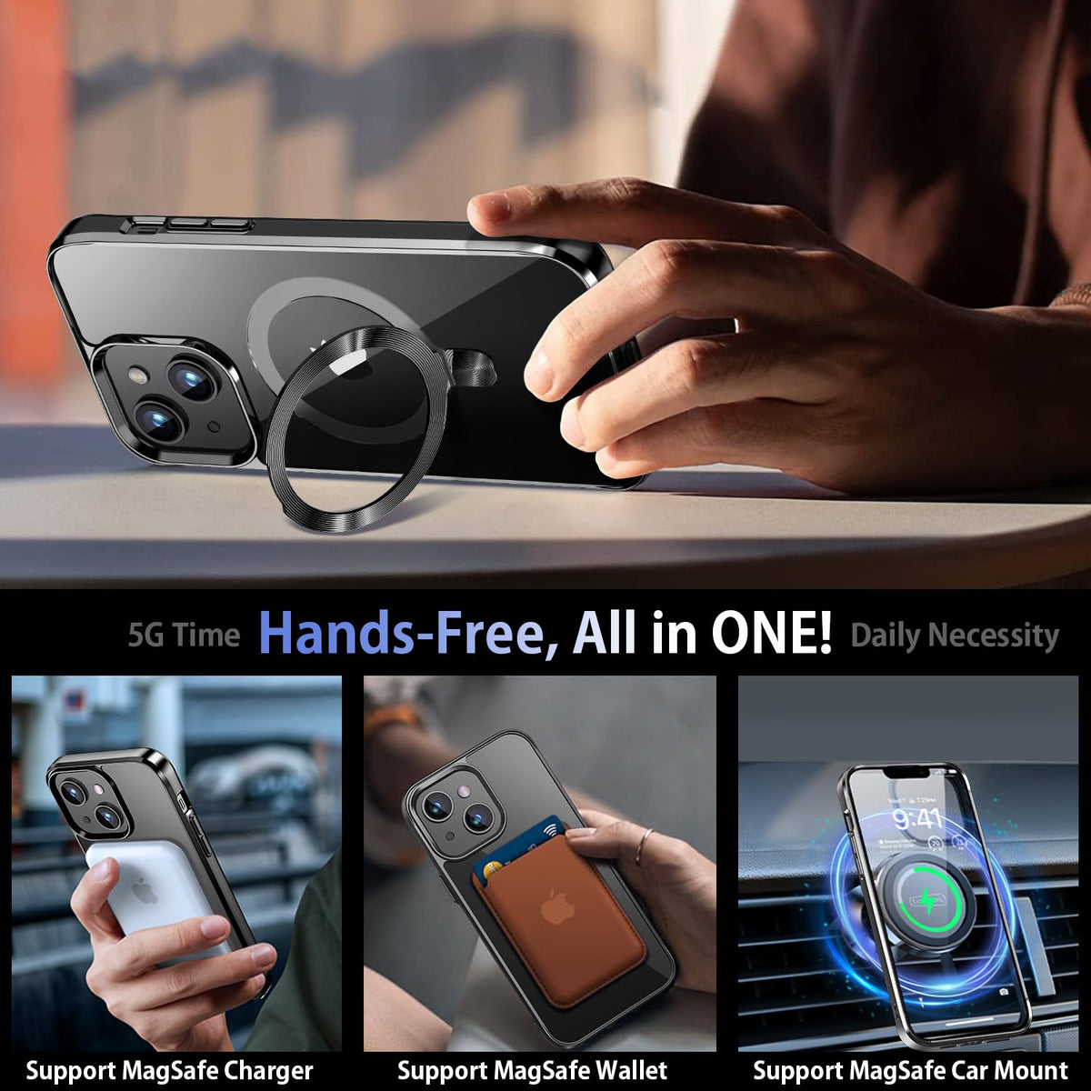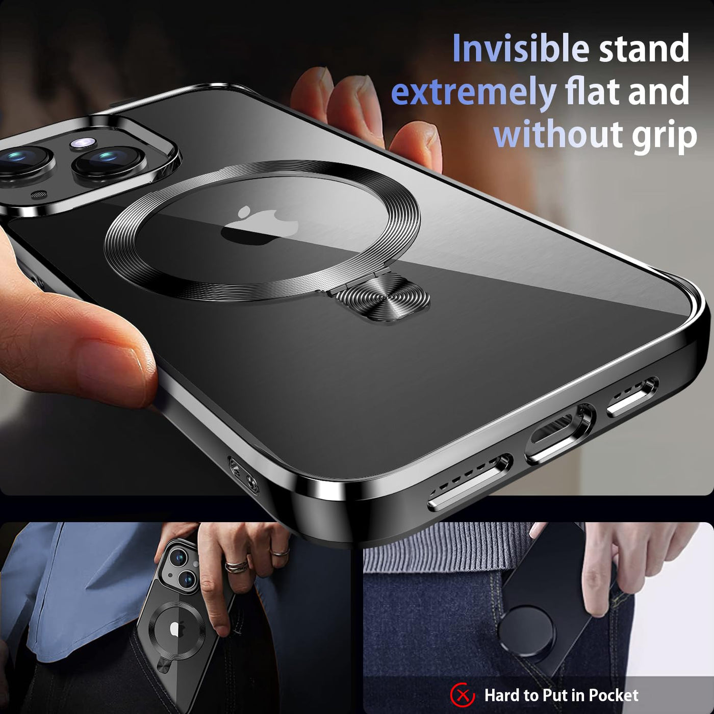 Tlikemiss [Cd Ring Compatible With Magsafe Invisible Stand] Magnetic For Iphone 15 Case, [Electroplated Bumper Non Yellowing][Lo