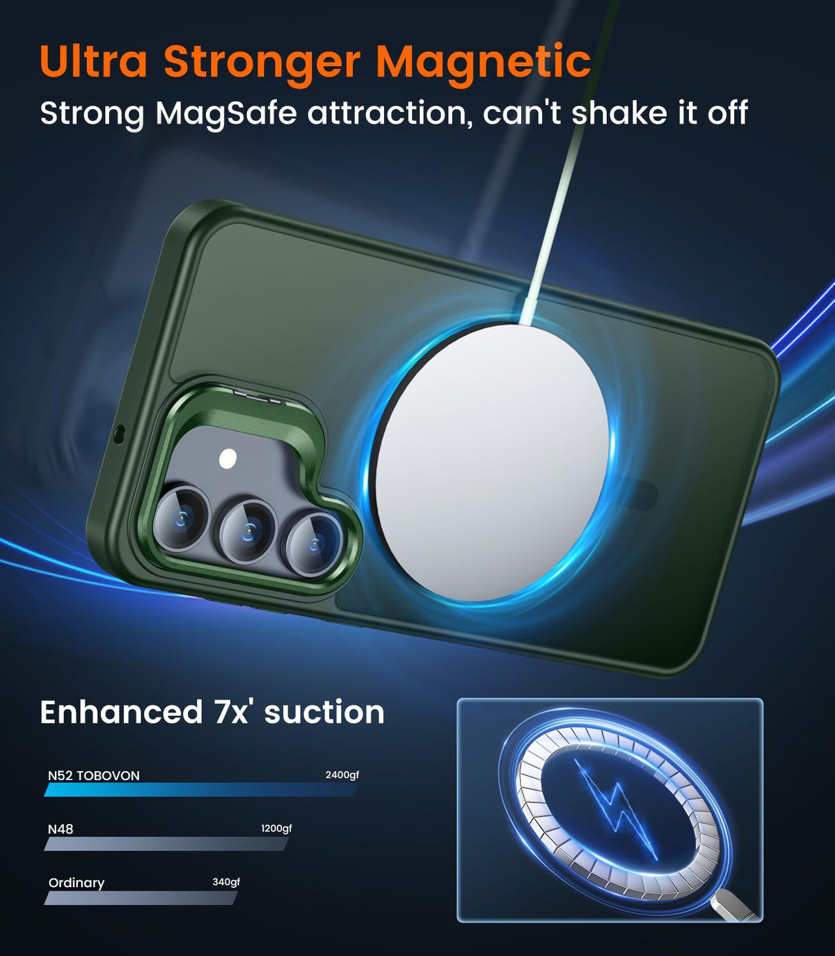 Tobovon For Samsung Galaxy A16 5G Case, Fits Magsafe, With Built-In Camera Ring Stand & Sceen Protector, Slim Translucent Matte