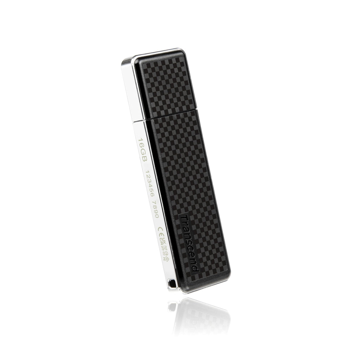 Q: What features enhance the durability of the JetFlash 780 flash drive?A: The JetFlash 780 is designed with a sophisticated checkerboard pattern and metal plating, which not only adds a luxurious feel but also enhances its build quality and durability.